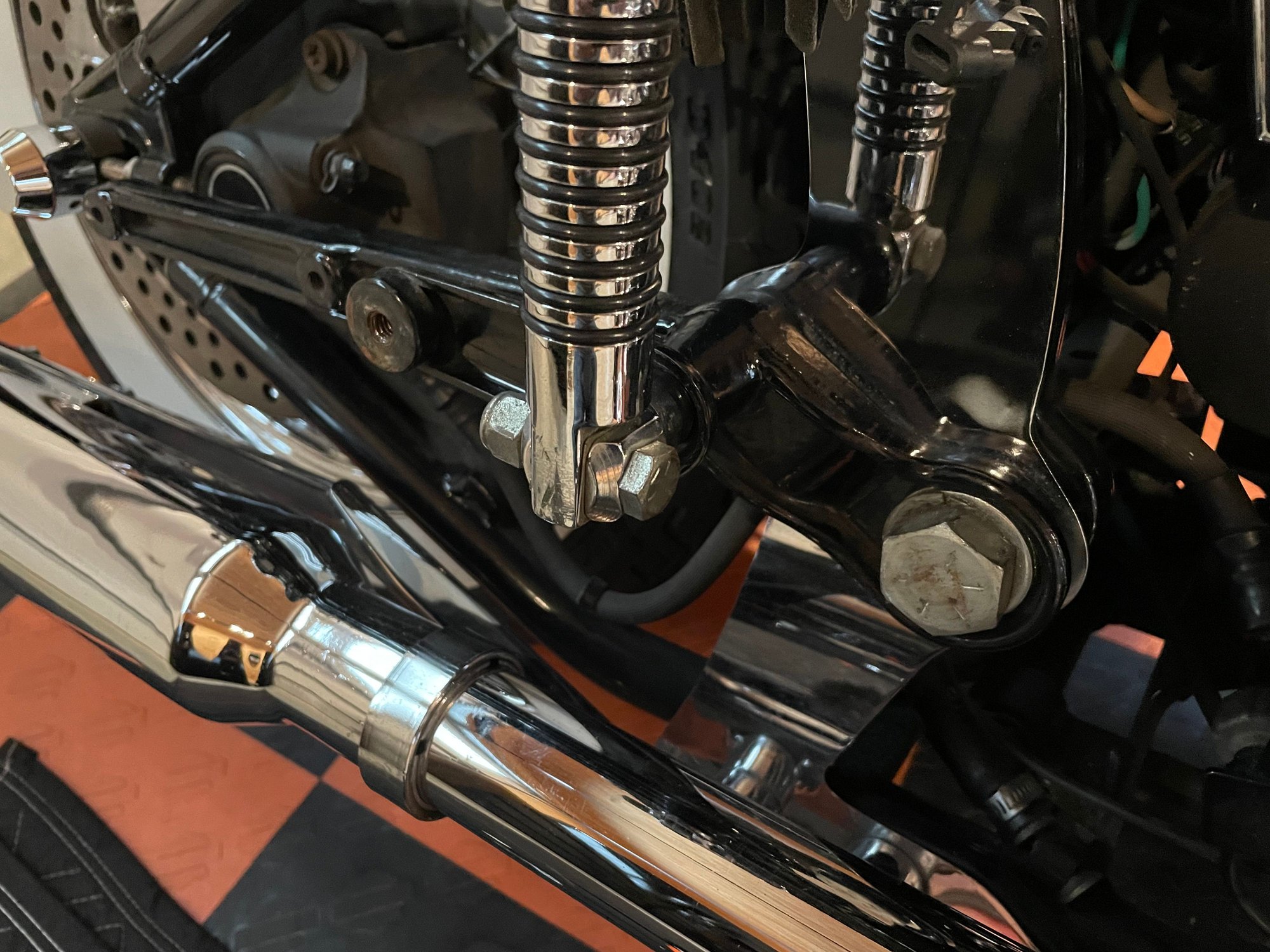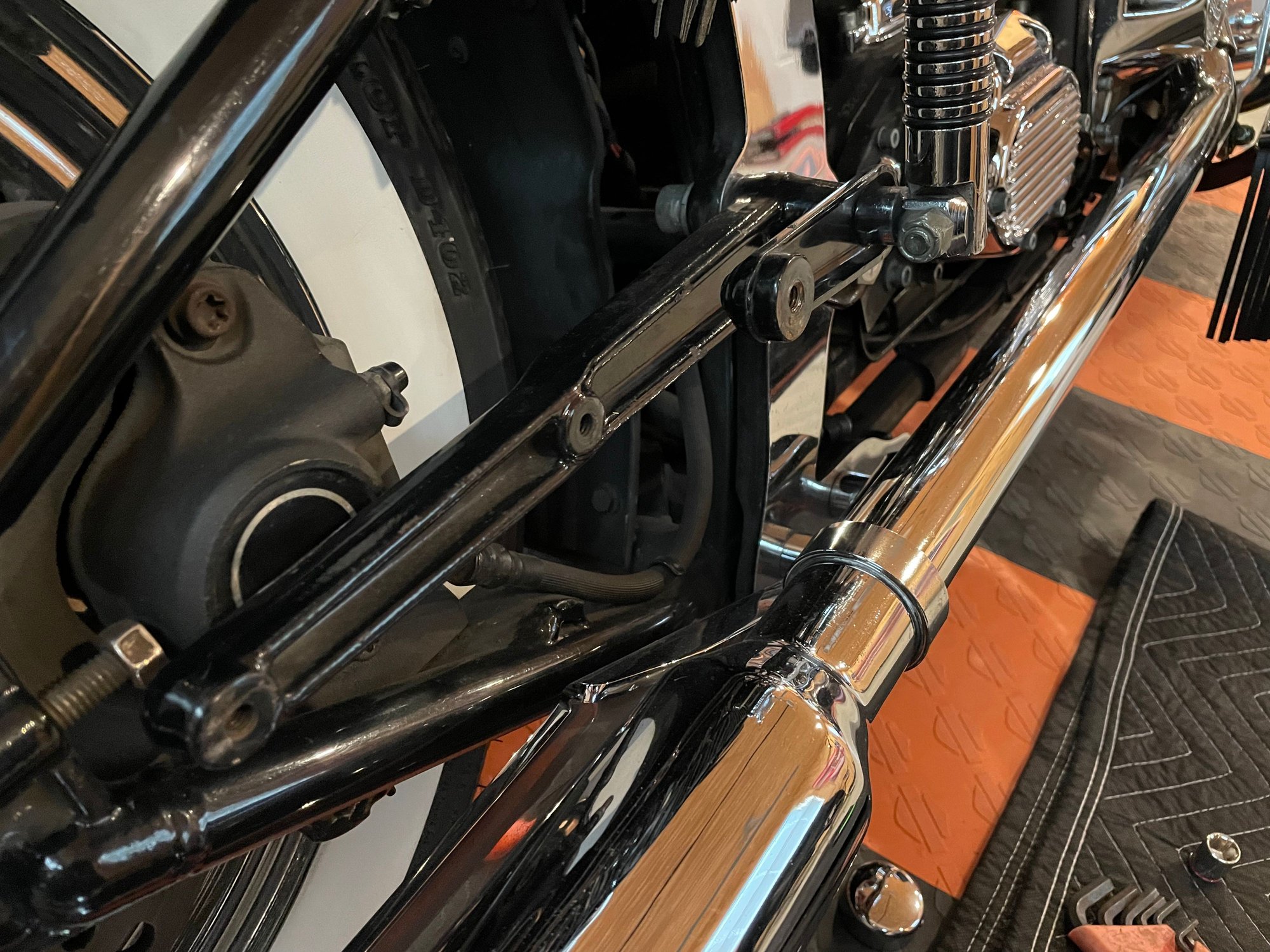 I want to remove this exhaust bracket on my 93 fatboy since I no longer need it. The bracket is attached to the swing arm bolt. My question is can I remove the bolt, take off the exhaust bracket and reinstall bolt? Will I need a spacer to replace bracket thickness? Do I need to worry about the swing arm moving out of alignment while bolt is removed?
