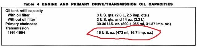 I've got a 1993 FXDWG and I'm a bit confused about the quantity of oil for the gearbox.