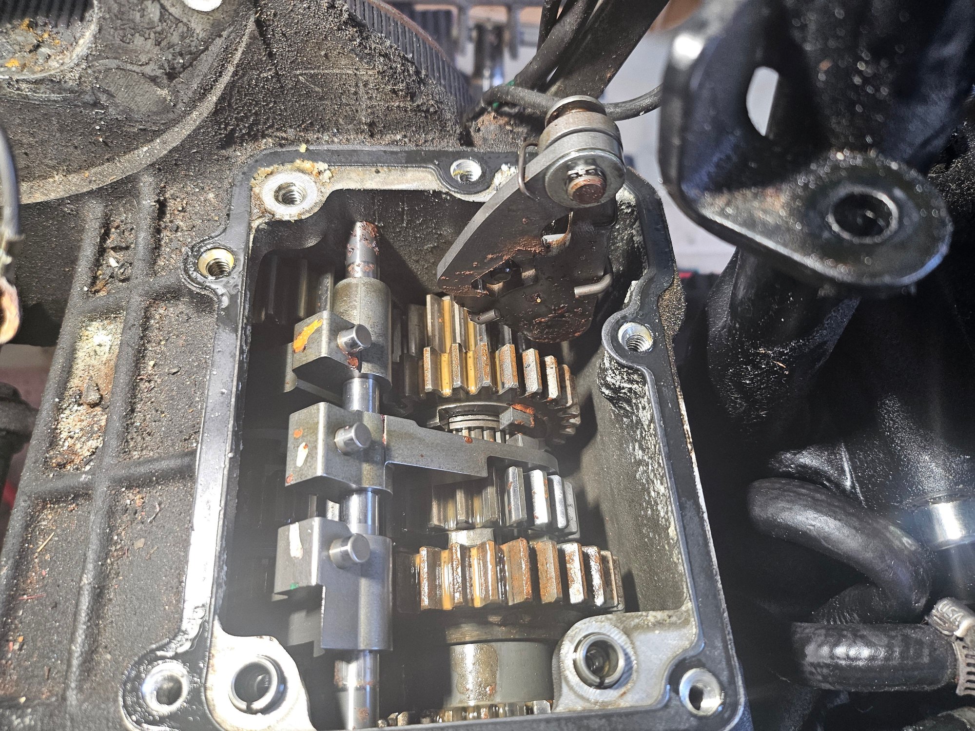 On a positive note, the transmission doesn't look all that bad above the waterline. I'll flush it out with ATF and take it apart when I can get my hands on a pulley socket next week.