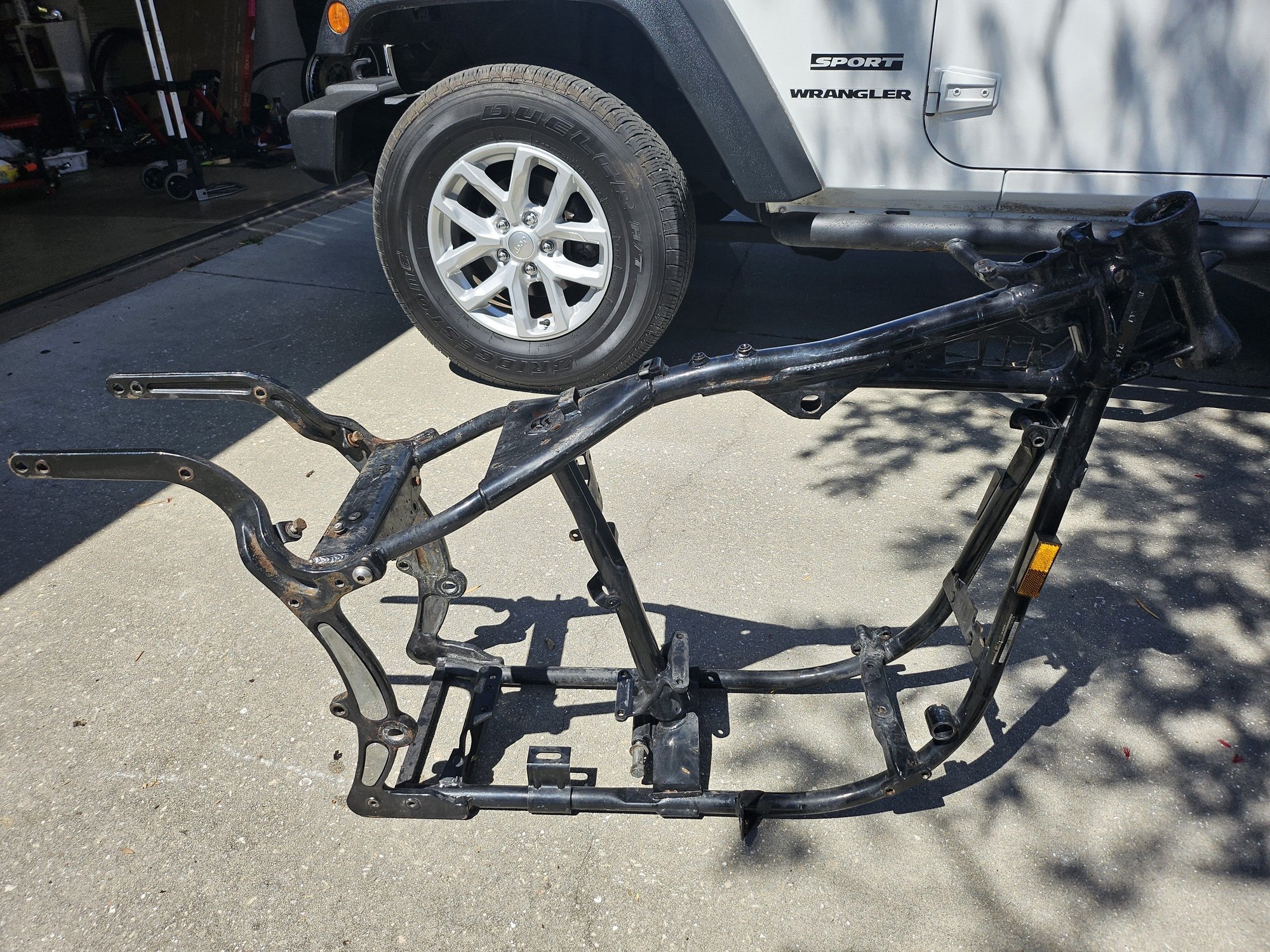 I'll buy another bottle of pine-sol for the inside of the frame, swing arm and forks. Then I'll start spraying the insides with PB Blaster, but that's a job that has to continue when I'm home. When I bring those items back, they'll be ready for the start of the assembly phase. The HD parts manual came in today, too, so I'm confident I'll remember how it all goes together, LOL. Harley's website has them too, but I like having a paper copy with me when I'm working.