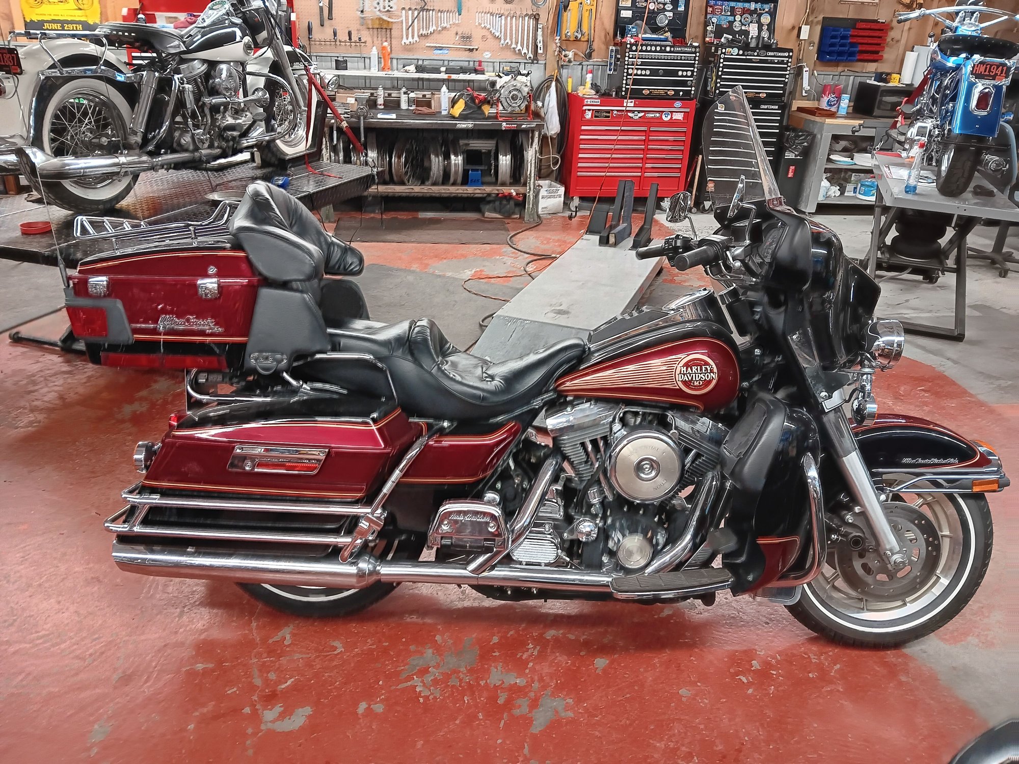 Picked up a '95 Anniversary Ultra Classic in pristine condition with 6400 miles today. It looks like it lived under a cover and was well cared for. Now I'll have to be patient and wait a few months before I can ride it.