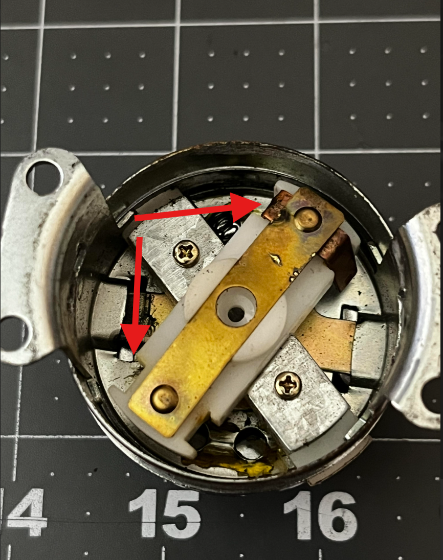 I suspect something internal on the switch shorted out? It's also real rusty pretty much around the whole thing.