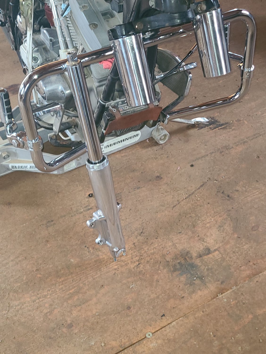 Have a very slightly bent fork tube. Like a couple of thousandths, it'll slide into the top of the triple tree just a smige. I could probably force it in, not sure I would like the additional stress to the o'l girl. The left side slides in both sides without issue, the right has the same issue on either side.