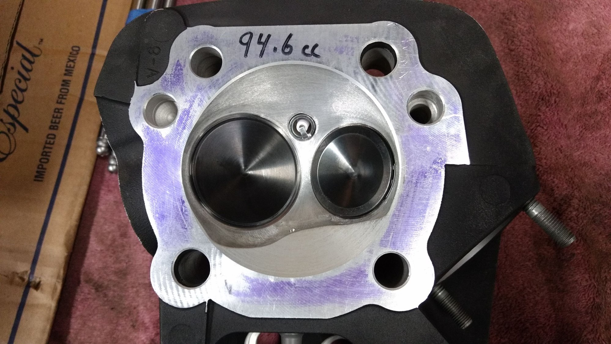 I'm very happy with them.. 1.98" intake and 1.63" exhaust with a chamber size of 94.5 cc and a set of Axtell 30 degree pistons milled to 18.4 cc domes.. It all works very well together.. I'm pretty much done tearing down and redoing this motor, although I will have to tear it down eventually, I think the cases are leaking in the rear.. Will need to remove the primary to get a better look.. At that time I'll do the clutch.. It started slipping around 3800 rpm in 3rd@WOT.. I just want to get what ever power I can out of what i have..