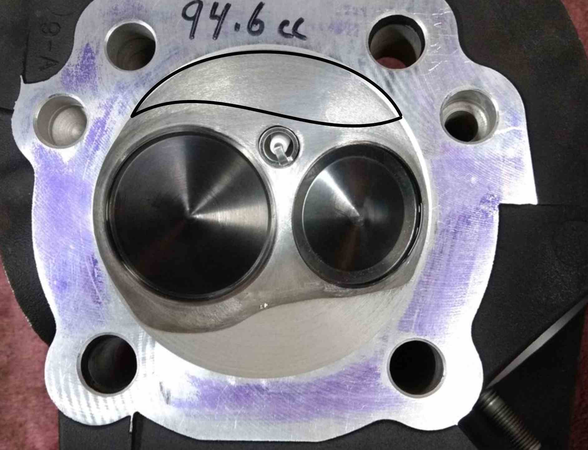 I’ve always been very very proud of being able to set up streetable shovels close to 12 to 1 and run on pump gas. And truthfully, most of these have been between 26 and 28° Full advance on anything from 93 to 103 in.³. There’s no way I could do that with a dual plug set up. Believe me I tried over and over. To reach your compression goals you had to use a taller piston. if you had two spark plugs in there it lowered the compression, it never ran as efficient. The chamber was the key to raise mechanical. Lots of clay, dremmel and machining… tight tight tight chamber with low dome was key