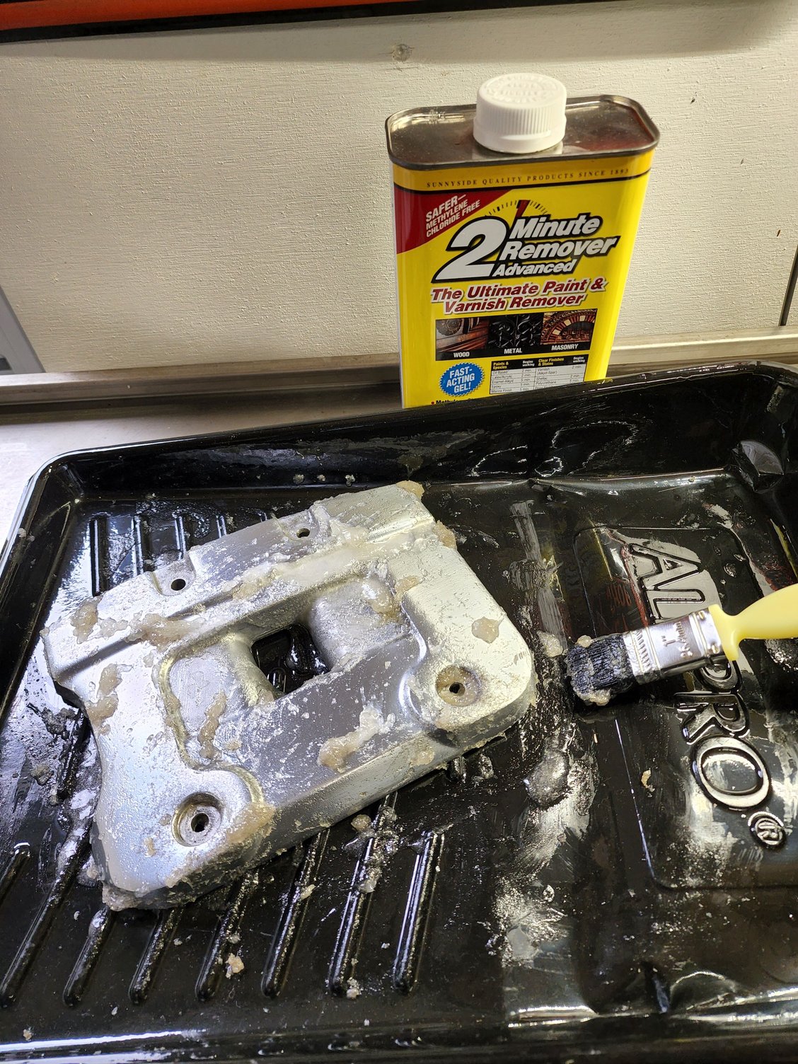 As for your paint, while it is off, strip it with the aircraft stripper as it only takes a few minutes. The TSP is an interesting idea that I'll have to try, as it's a lot less dangerous to use than true paint stripper. One drop of paint stripper in the wrong place and you have big problems. That's why I say take the part off, put it in the driveway away from everything else and do it there. Then if you want to paint it black, clean everything very well with degreaser, do it again, wipe it down with paint thinner, then spray it with what you want. I like Rustoleum products myself. I painted my Lotus 7 clone with Rustoleum Professional. The high temp stuff probably isn't needed for the primary as I don't think it gets that hot, but if other people have used it successfully, go for it.