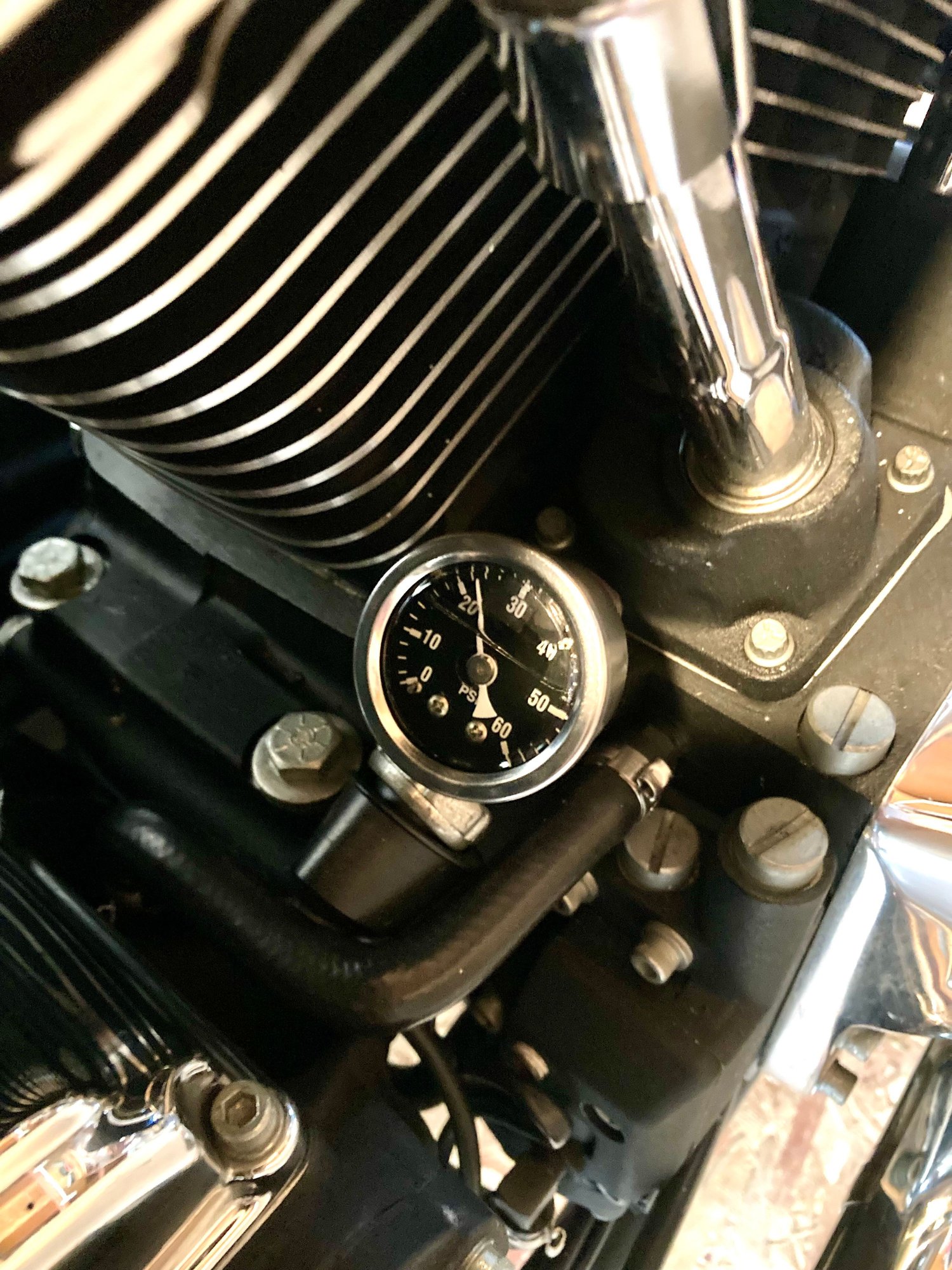 My old gauge that came on bike when i bought it didn’t work. I bought this gauge recently, it is meant to work on the Harley EVO motor. It says 22 psi. At idle speed.