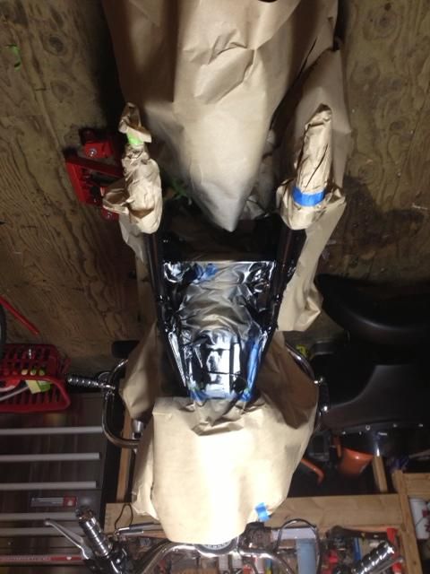Update on the paint, so I picked up at little orbital air palm sander from Harbor Freight for 30 bucks and took the paint all the way down to what I thought woulda been close to bare metal. Found several different paint jobs burried under the flat black it was when I bought the bike, including this very expensive one. The whole thing was air brushed on. Dont wanna know how much this guy spent on it.