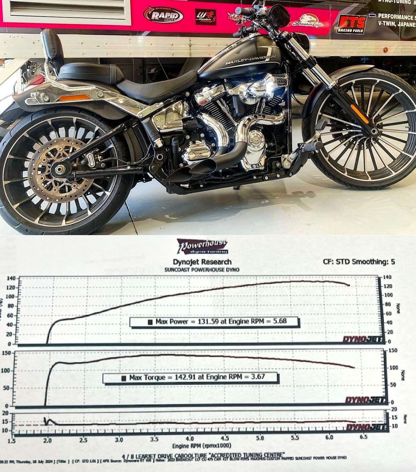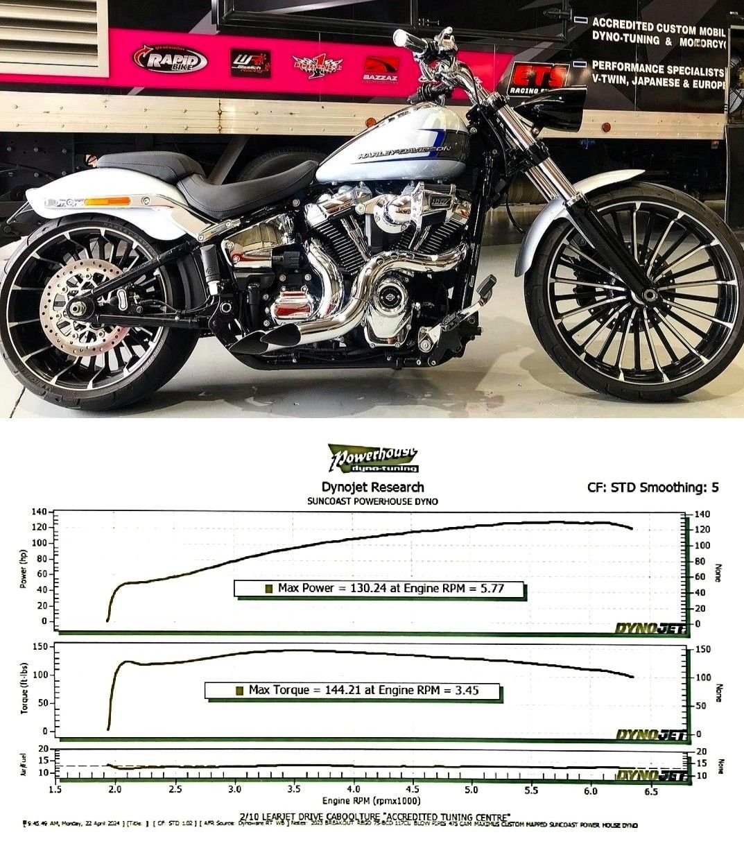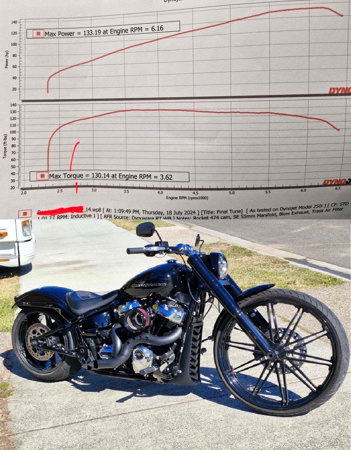 Our Killer & Kutbak Kits have been Dyno compared under controlled testing conditions with world recognised tuners, Maztech & ALP Performance Bikes. Using V&H Big Radius 2 into 2 as an example our system delivered an increase of 10 HP using identical controlled environment testing conditions. Without baffles our DB Sound levels were comparative & with our 400 PSI 304 Catalytic Converters our system was considerably less losing only 5 HP and coming in at 103 DB at 2500 rpm. Why? because our Induction boost and 3-step design producers a deep sounding note like a V8 Ski Boat in water.
