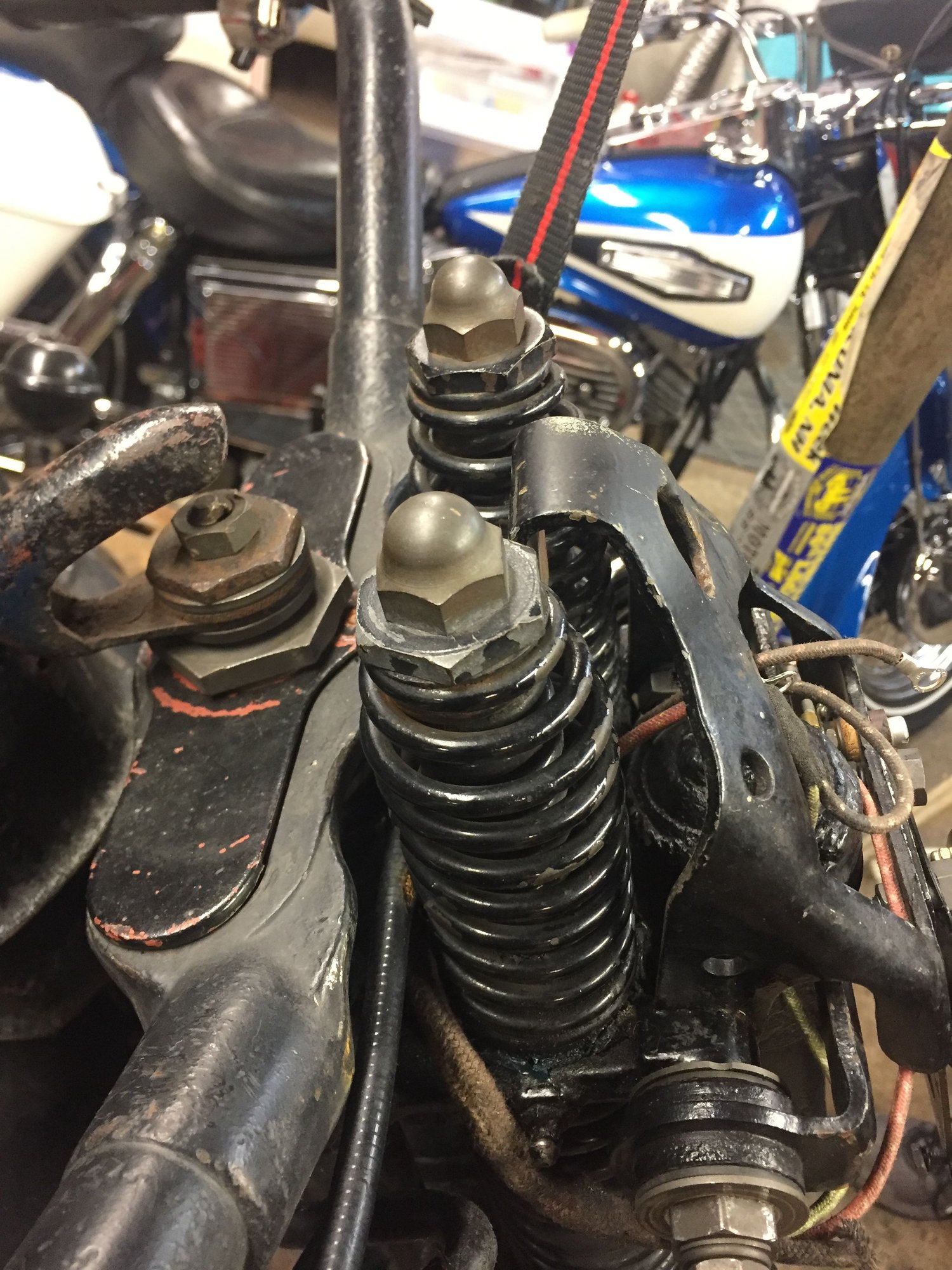 I think it helps a little at speed, not enough to not ride the bike, but a little. A shot of it with the previous handle bars, you can see the mix of original parts and Colony replacements.