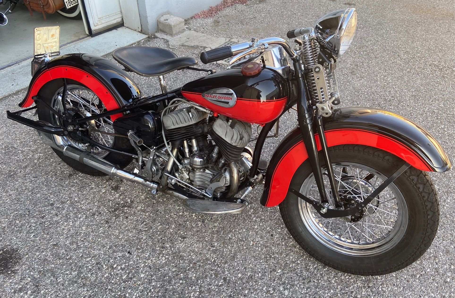 Take the primary chain cover off, the letter/number in the rectangle will give you casting date for the motor. Mine below is F 5, F = June, 5 = 1945. My bike is a civilian 1946 WL, so casting number makes sense. You number will likely be 1943/44 somewhat matching your belly numbers. But that unfortunately will only get you into the neighborhood, VIN # is the proof.