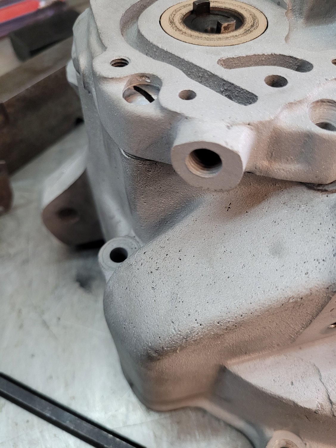 Bigger problem is the crack. Thinking the cover needs to come off for a proper repair.