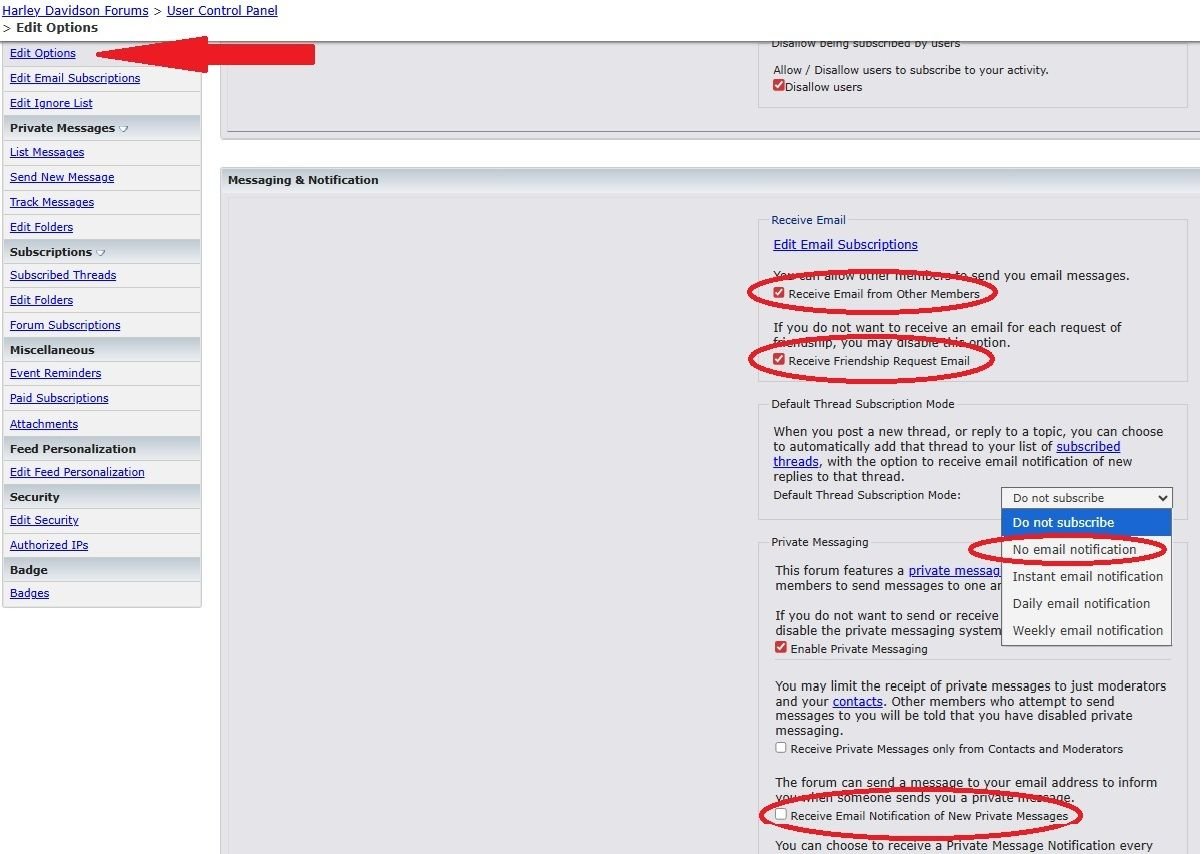 1. Below 'Edit Options', click on 'Edit Email Subscriptions'