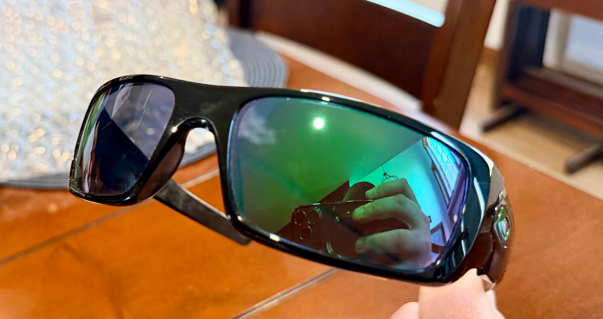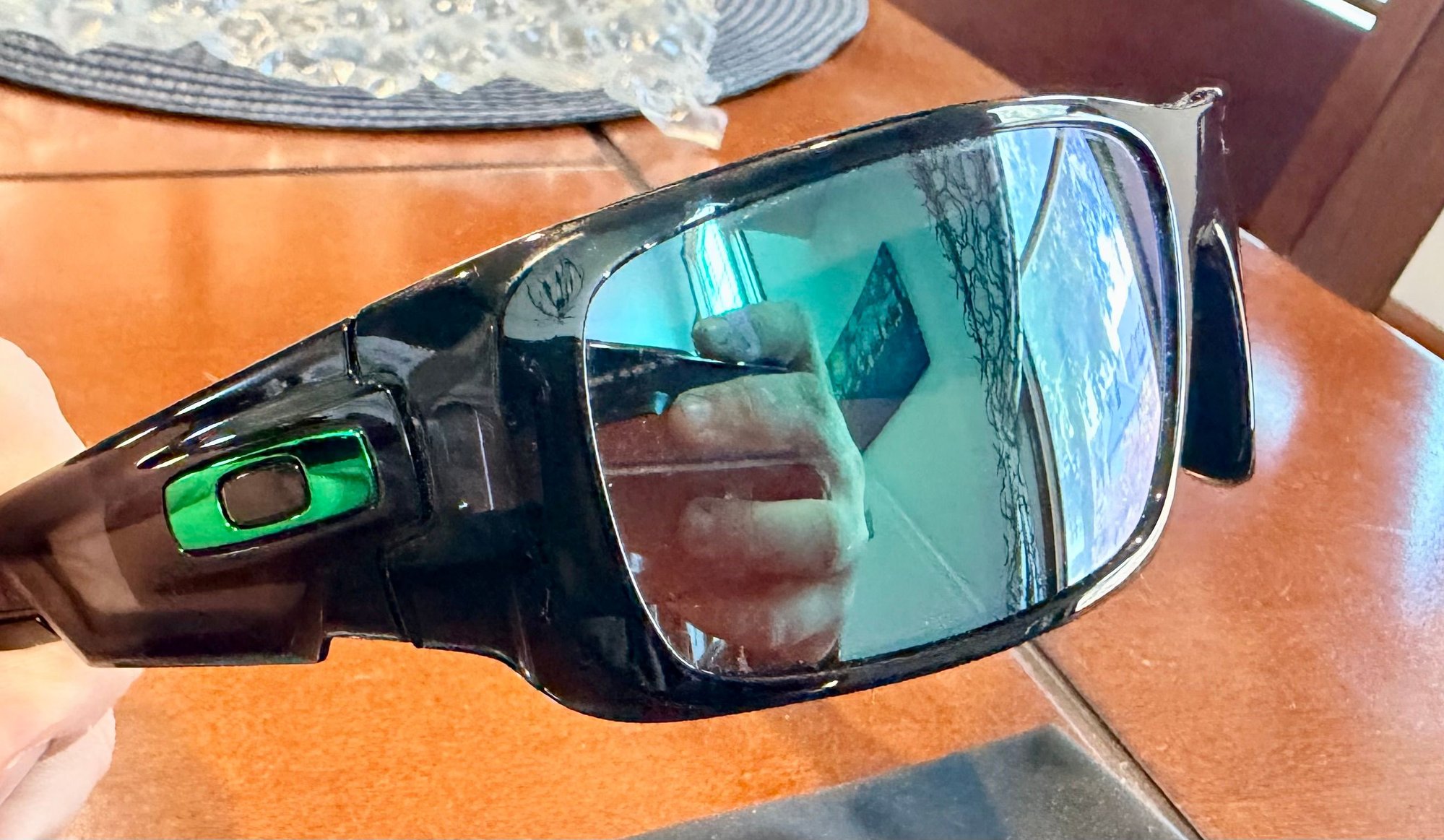 No flaws on the lenses at all, frames are in great condition as well. Comes with the Oakley microfiber bag.