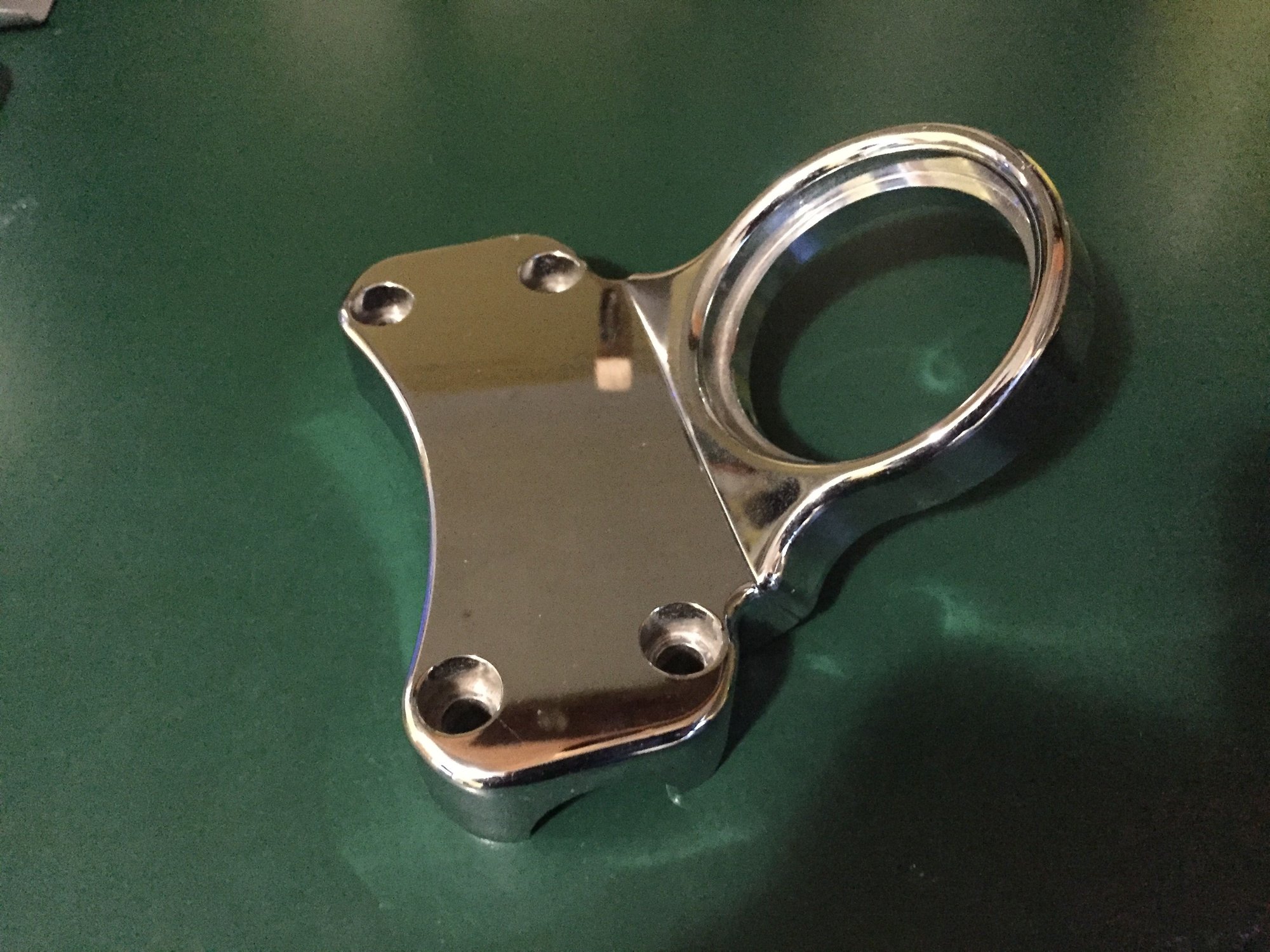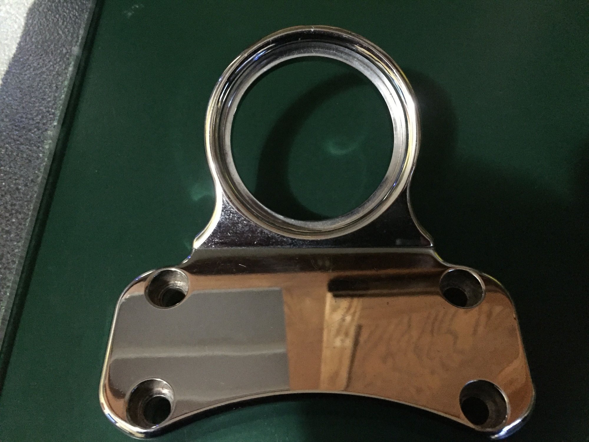 Couldn't find a specific section for steering and such so I hope this is OK to post here, I have a solid one piece riser top with tach mount that I bought several years ago, the centre to centre riser spacing is 4" and I am sure I took it off a Harley Davidson just cannot remember which model. I am now selling the item and would like to know which HD if any had the 4" riser bolt centre to centre spacing and a 1" diameter handlebar. Included some pics if that helps, any info would be appreciated.