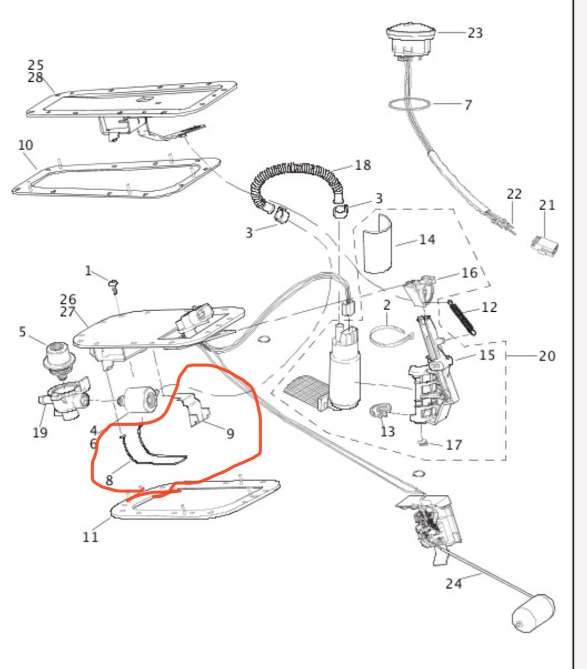 I have a 2006 Heritage Softail FLSTCI that I am trying to get running for my brother who has fell on some hard times. I noticed when I was replacing the fuel filter that the bail and the bail bracket is missing which are what hold the fuel filter and fuel pressure regulator in place. No dealership in the US seems to have these parts and I was wondering if someone has had this same issue and came up with a way to install the filter and regulator without these parts so they will stay in place. Attached below and circled are the parts I am missing.