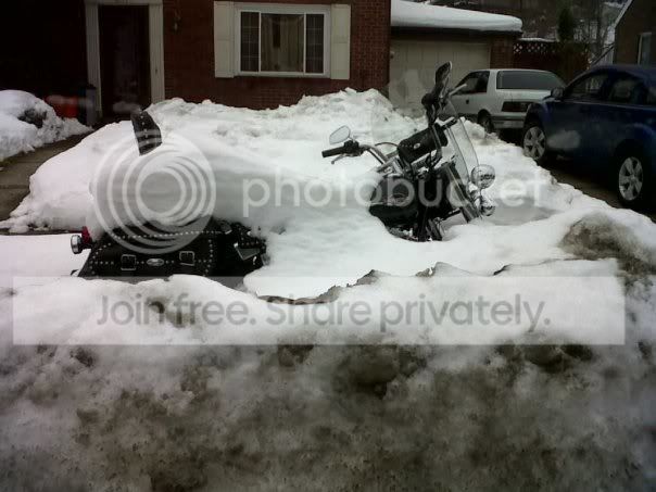 Maybe his disgruntled wife moved the bike out of the garage and put it in the street. Anyone else care to guess why this bike is buried in snow?