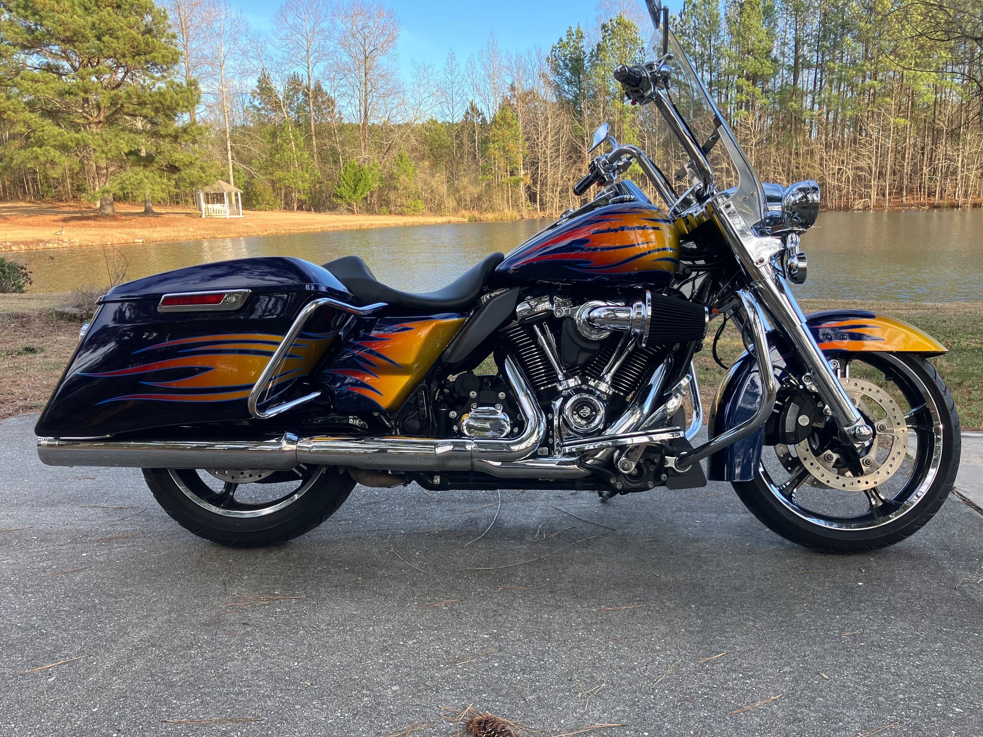 This RK is # 18 of 50 with the metisse/ chameleon flame with shadowing. Harley also installed the SE 6 speed, 95 ci big bore with se 211 cams. Has a stand alone tuner. The original owner upgraded to a chromed 9 spoke wagon wheel. I just bought a matching rear wheel. A bunch of chrome added to the handle bars and engine casing. Runs great with tons of power.