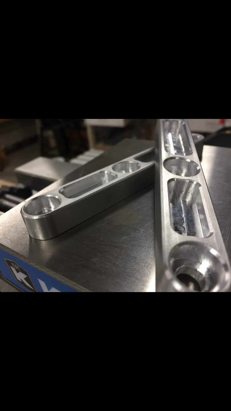 So, didn’t like what’s currently on the market only one reservoir system from BBc I didn’t like and way too much money. I bought Howard’s #6s and they are great and he was awesome to work with. But I wanted a bracket that sits lower to the bike and a little farther back. So fired up the cnc machine and cad and made some stuff. Will continue to update as I go. Will be doing a test fit Sunday and will post more pics