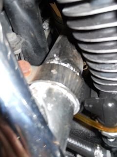 Did you buy those pipes used? They look like they've been run awhile. If so are you sure they're for your specific model and year because that's a hell of a poor spot to have that connection. The duals on my 93 FLSTC connect on the right side. In any case, get in touch with the company that made the pipes, send them the pictures and get their input.