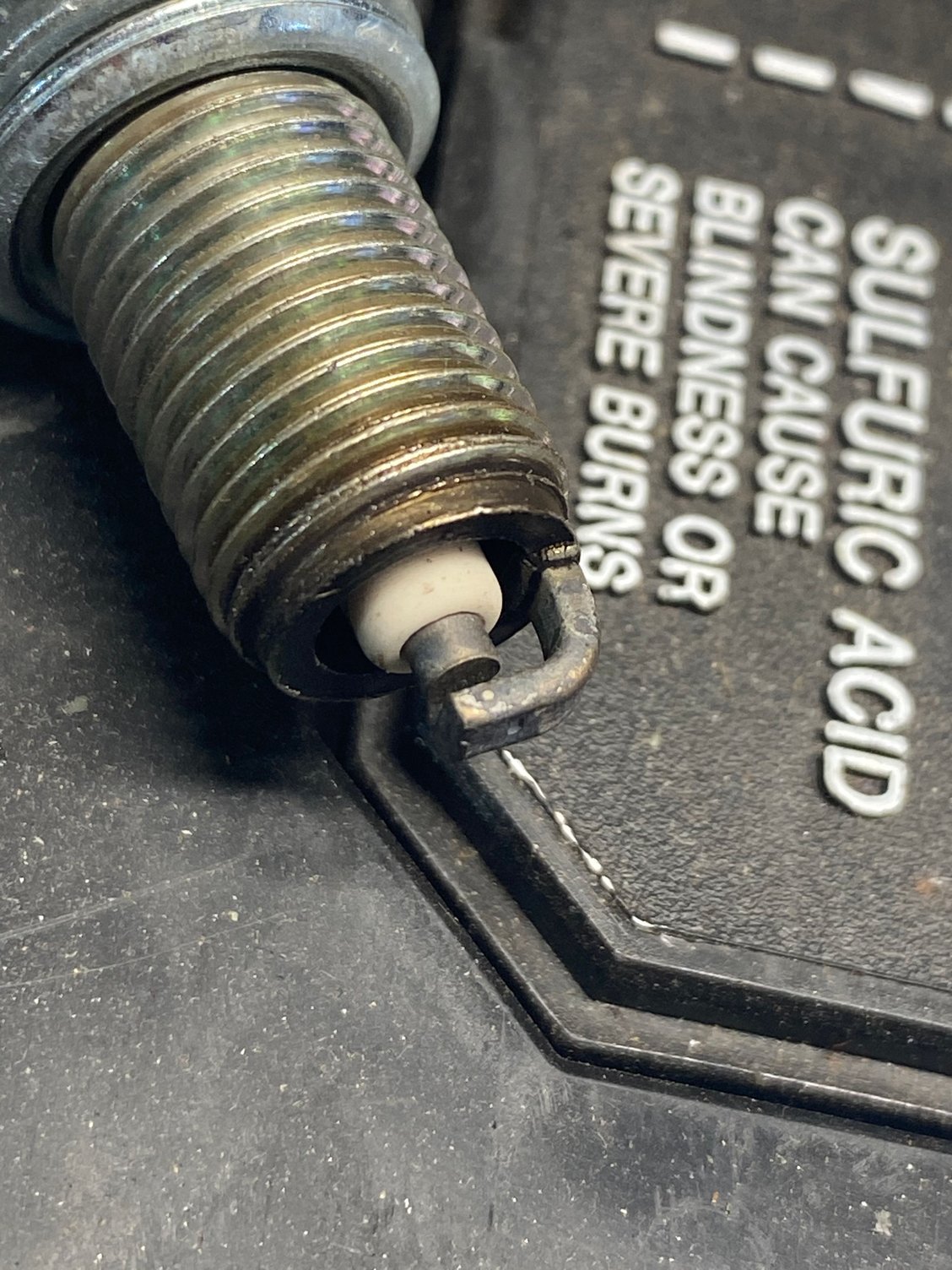 I pulled my plugs and the round part is completely white, and the electrode is a mix of gray and black.