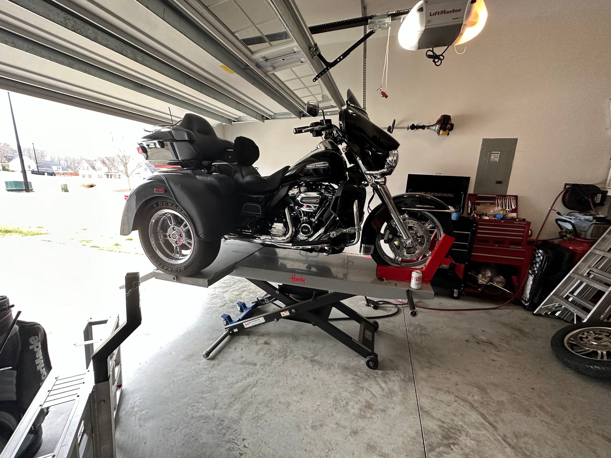 Tomorrow I'll put a lot of tool boxes and heavy materials on the lfit to simulate the weight of my '99 fatboy. I was able to get the lift to go up and down without any weight or extra parts that came with the lift. I'll get the rest of the lift put together soon. Side ramps and the front wheel choke needs to be added.