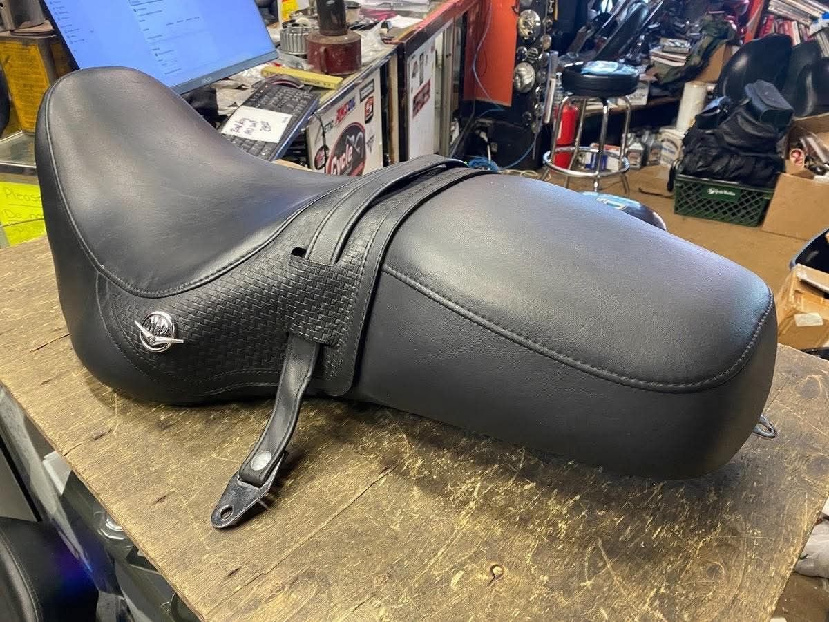 My 2001 RK seat needs to be either replaced or recovered, but I found this seat online. Mine does not have the strap and I’m wondering where that would’ve attached on the bike.