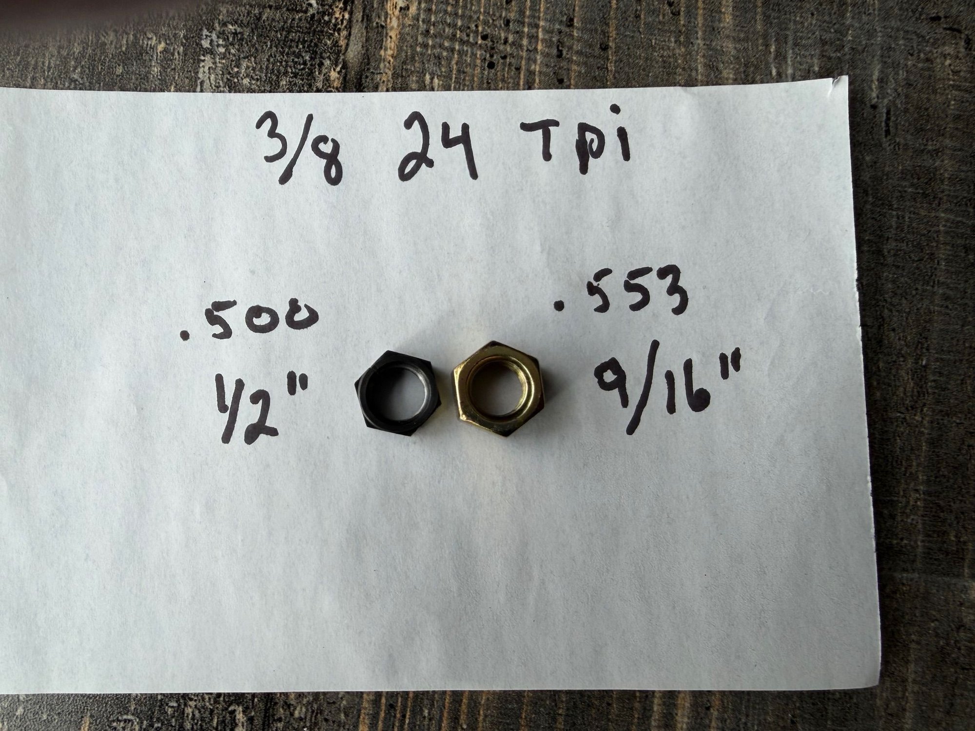 Ok, I bought a hardened 3/8" 24 tpi nut, it takes a 9/16 wrench, the original is a 3/8" tpi that takes a 1/2 wrench. As somebody already mentioned, I'm concerned that the slightly wider nut, .553 vs .500 OD, will rub on the inside of the pushrod tube. anybody ever try it?