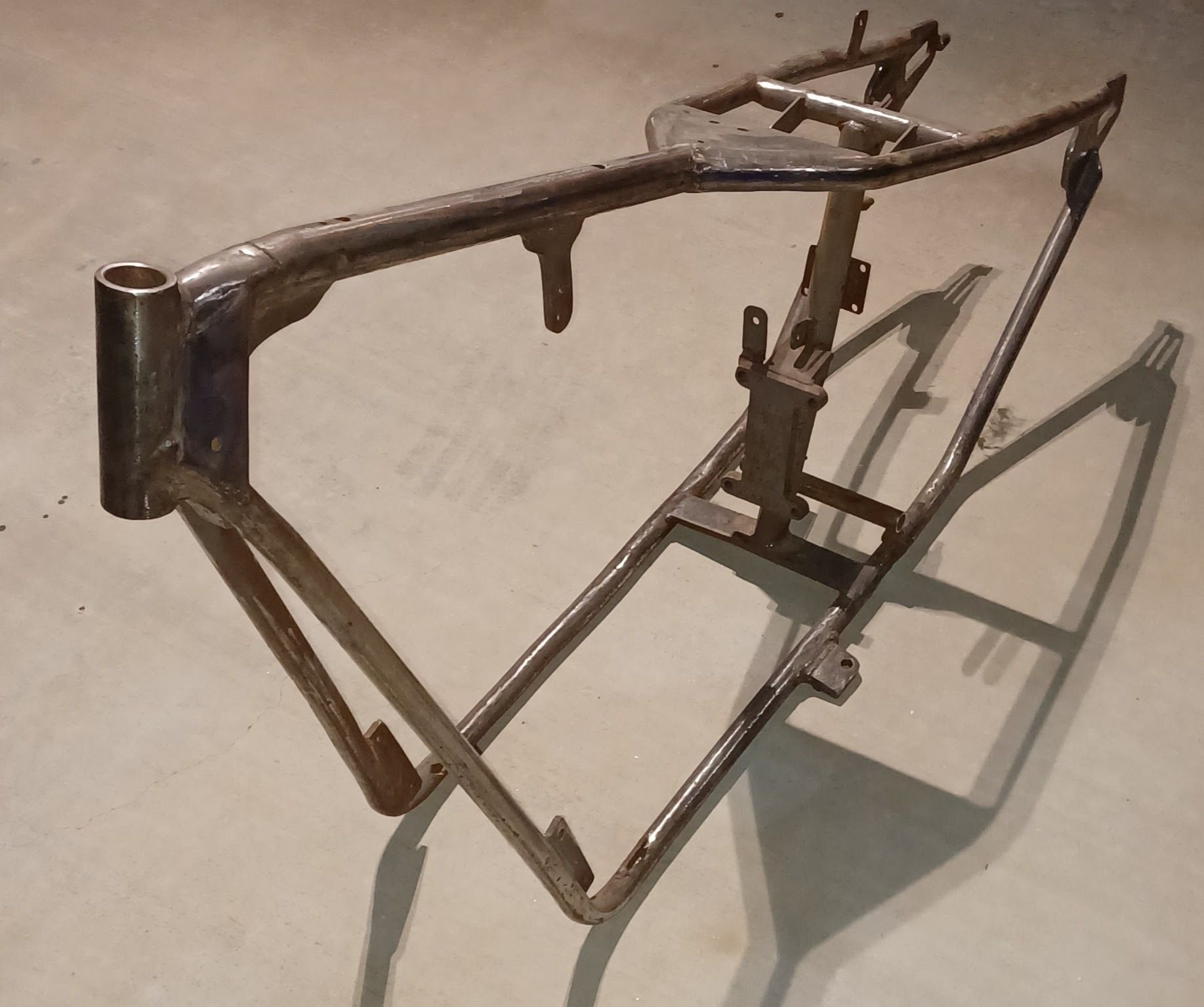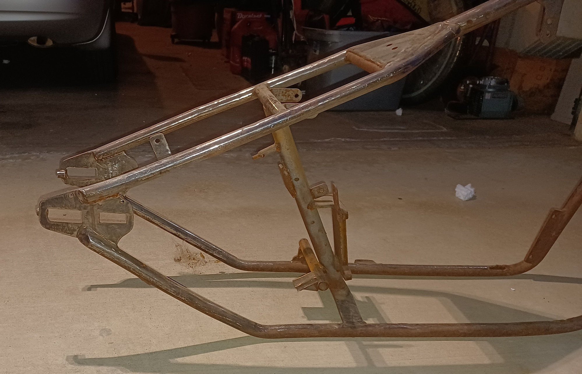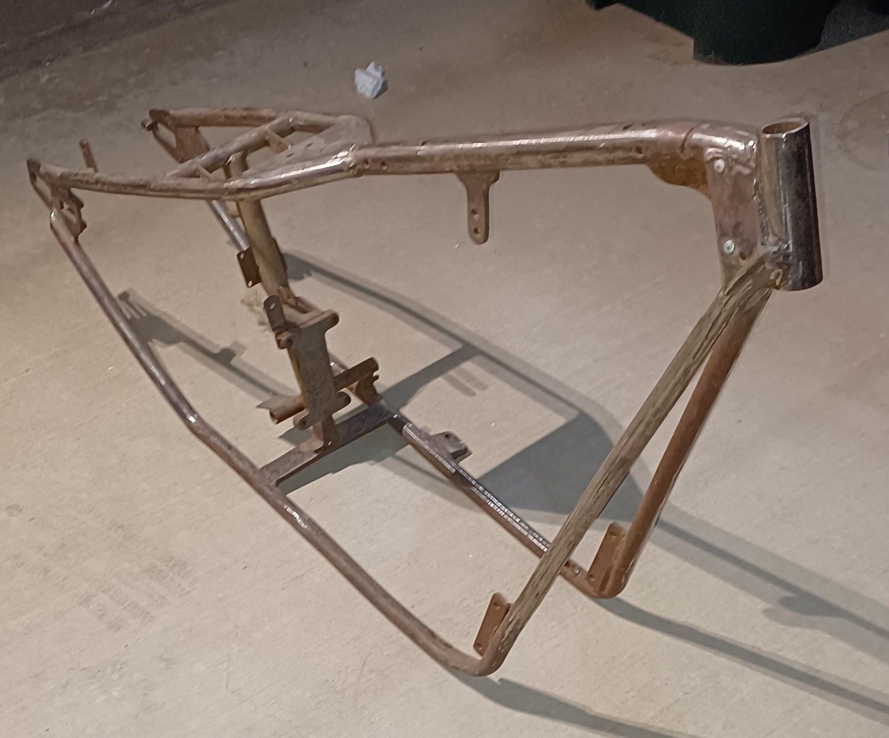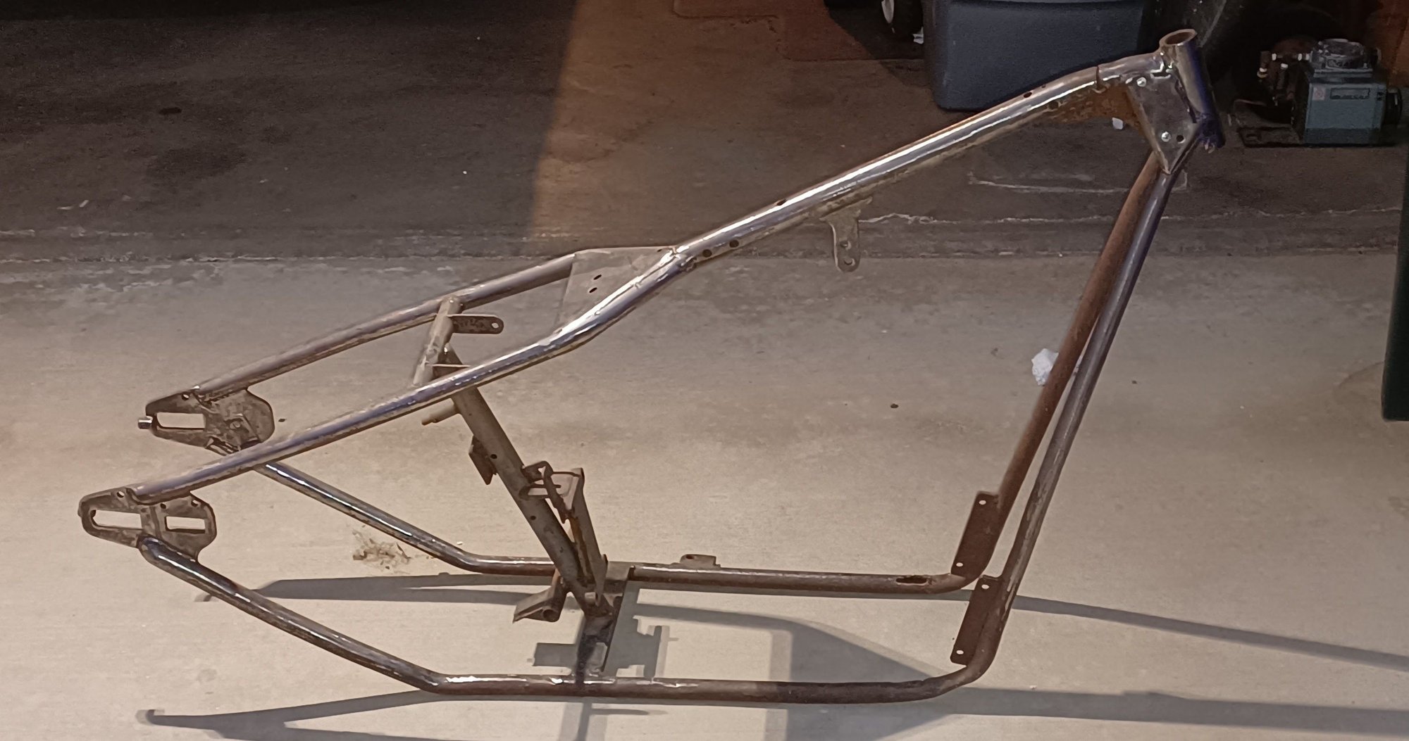 What's up to all im new here and hoping I can get someone that might be able to give me some info on this frame I picked up I paid $50 for it. It's rough and beat up but it's mine and before I jump into doing anything to it was hoping to find out at least an idea of what I got anything will be appreciated thank you This is it there is no numbers that i can find anywhere. Hope the pics help thank you in advanced