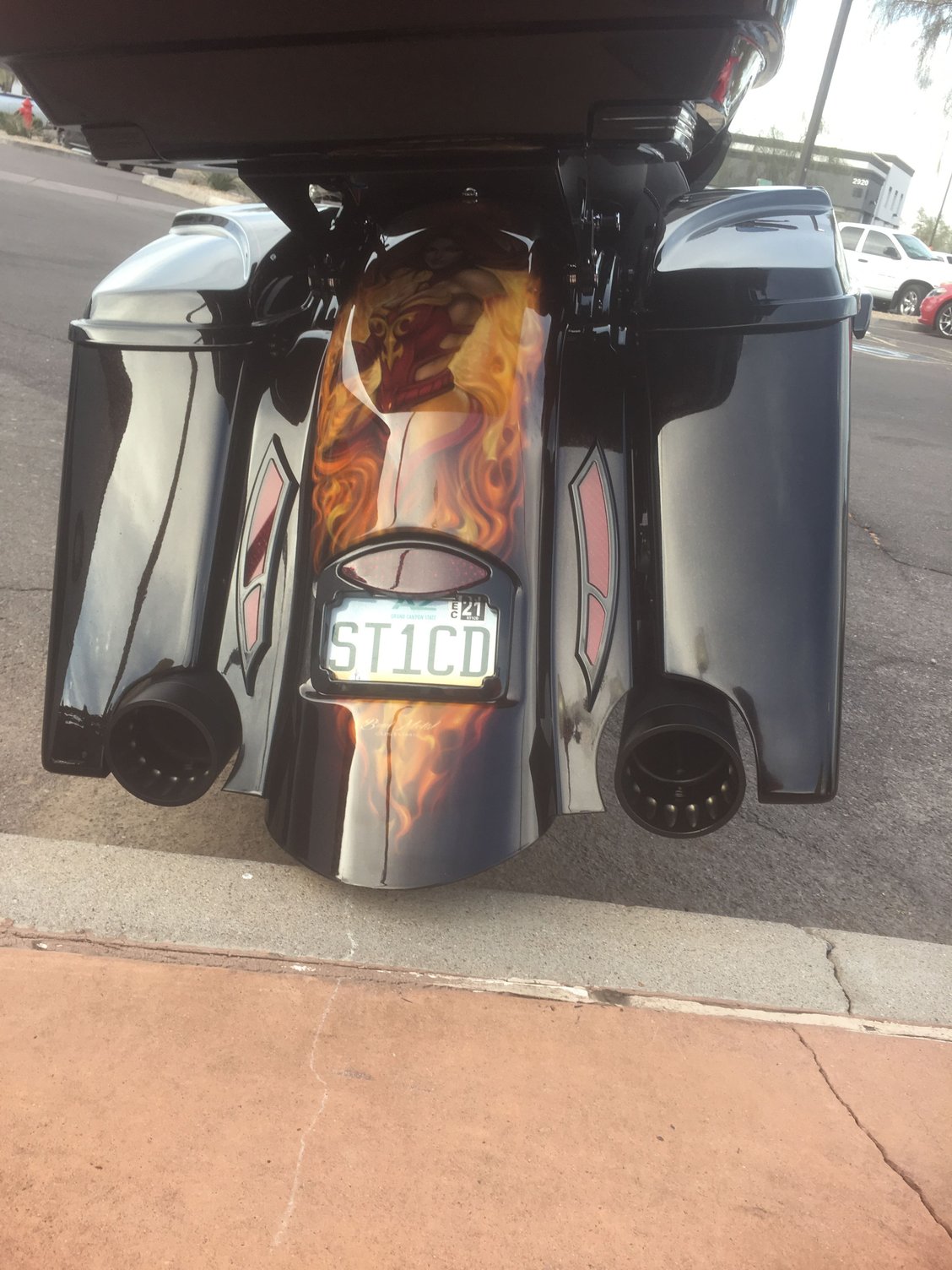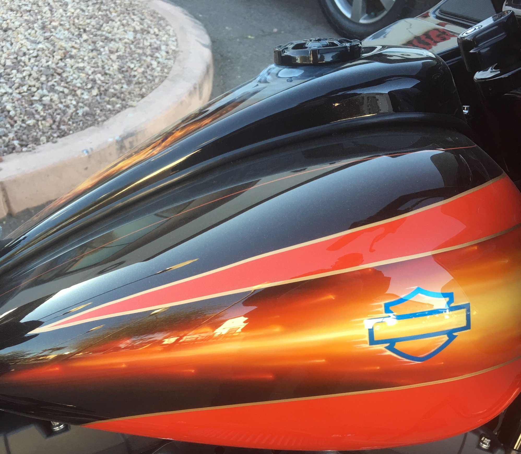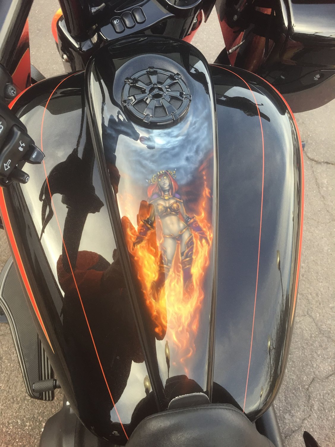 I'm toying around with the idea of removing the tank badges and having the Harley Davidson painted on.