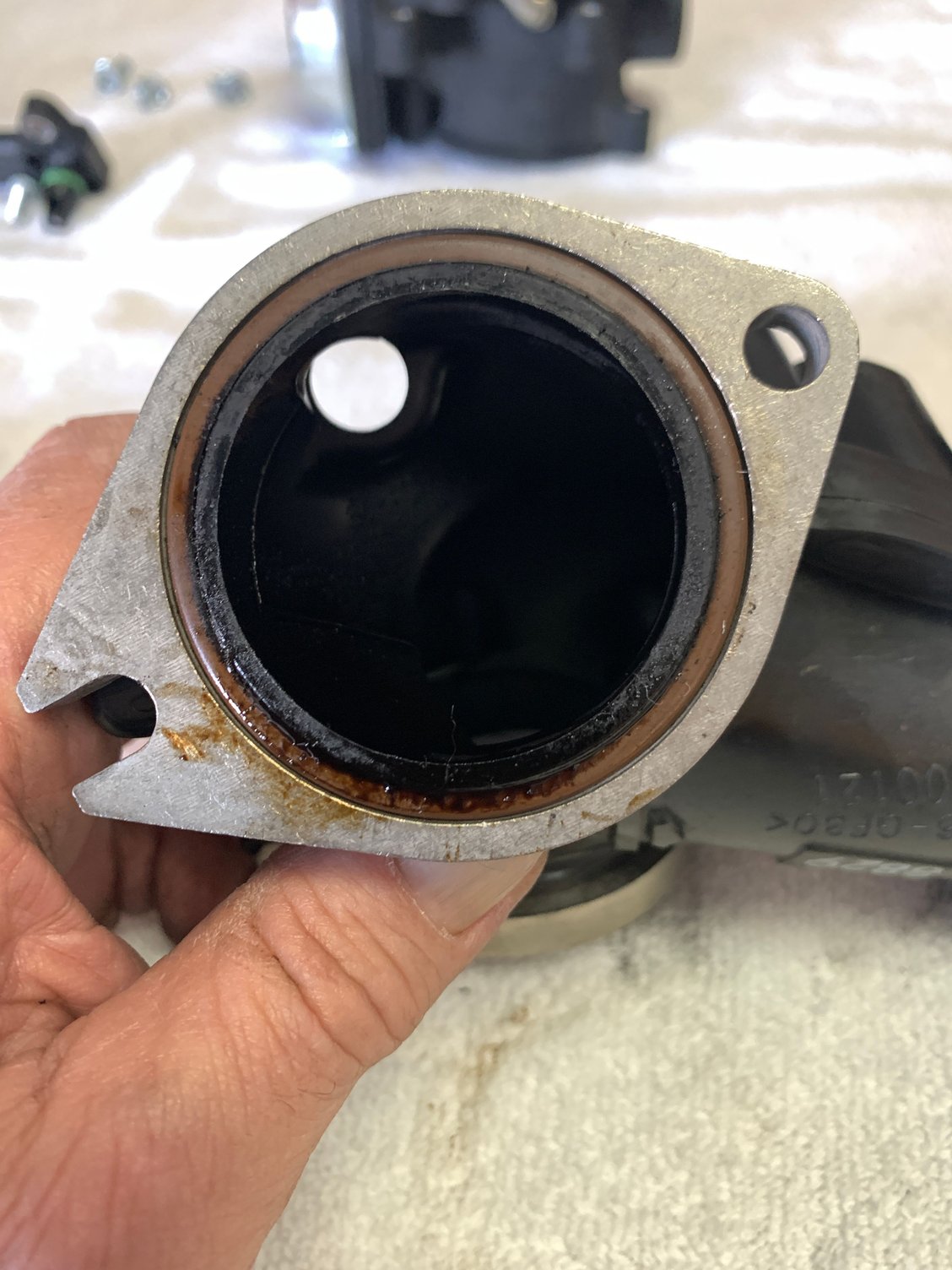 I find this. The flange bolts were tight, but I could easily rotate the manifold by hand. Rear manifold seal leaking oil. I did the bypass not long ago, so this is probably residual - but still - that's quite a bit isn't it?