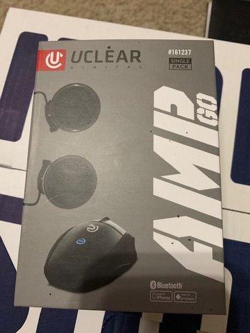 Brand new in the box. Uclear Amp Go Blue Tooth communication kit. This set retails for $119 everywhere. $85.00 shipped anywhere in the continental US.