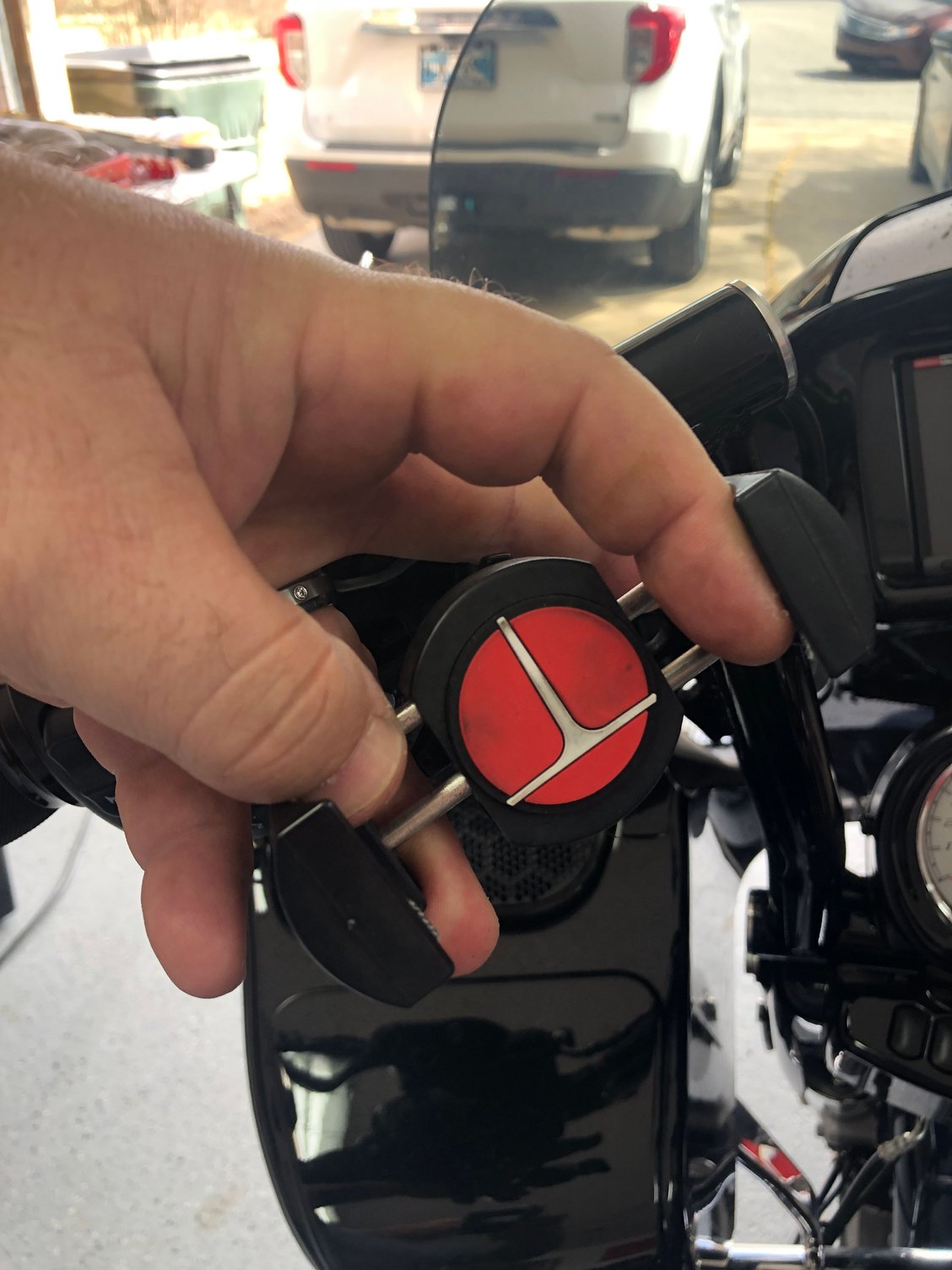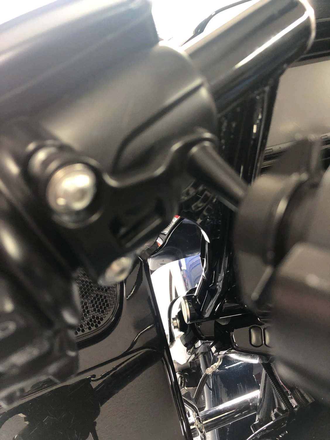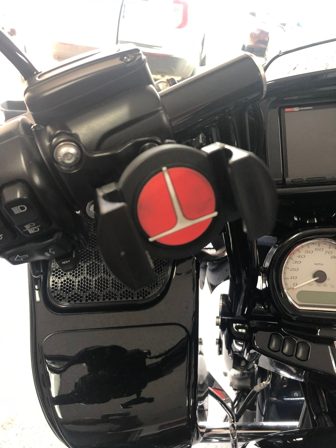 This mounts on your controls, replacing the 2 bolts on your clutch side. Won't scuff your handlbars like those other mounts. Ive had iphone 7 plus and iphone 10, 11 in and holds perfect. Nothing wrong with it, just upgraded to apple play headunit and don't need it on my bars anymore. Comes with everything in picture.
