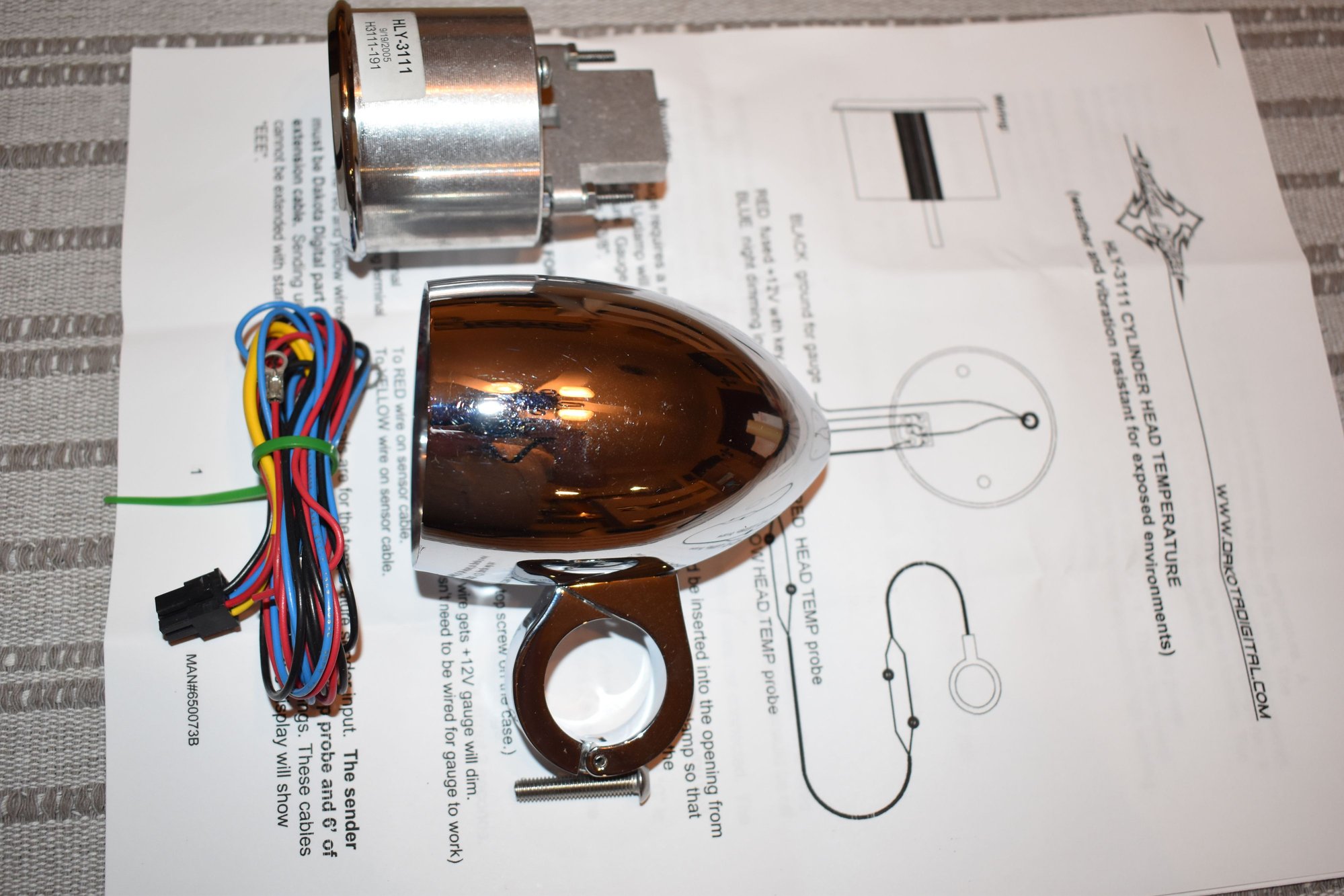 Dakota Digital HLY-3111 Cylinder head temperature gauge with chrome cup and 7/8 dia mount. This unit will require the thermocouple lead to complete the setup. There is a slight scuff mark at the base of the mount on the underside of the chrome cup. Purchased to go on my Sportster but never installed. Selling for $300