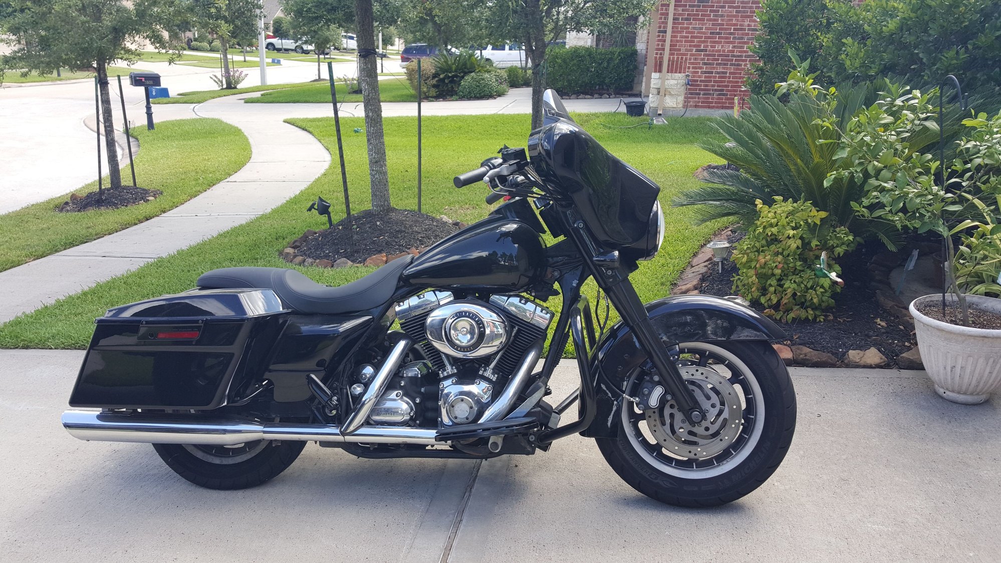 I am selling my 2007 Electra Glide Police Model which has recently been coverted to a streeet glide. Due to it being a police model the bike came with a 103" engine with a six speed transmission just like the more recent models. The bike has a brand new black paint job with everything painted including the inner fairing. The bike has new bags, rear steeet glide fender, and a drag specialty seat. The majorolity of the parts have been powder coated (crash bars, tank dash, front forks, front turn signals, rear turn signals, ect). The bike recently had a large service and a new belt put on which is $800.00 alone. Also added was a new Pioneer cd player with a rocksford fosgate amp and Alpine speakers. The blue value is much higher than what I am asking so please don't try to low ball me. I do not need to sell just don't have time to ride it anymore. Have prob ony out around 100 miles on it since it has been completed a year ago. NO TRADES CASH ONLY SALE. Feel free to call me with any questions at 979 574 4535. Make me an offer!! All I can say is no....Thanks for looking