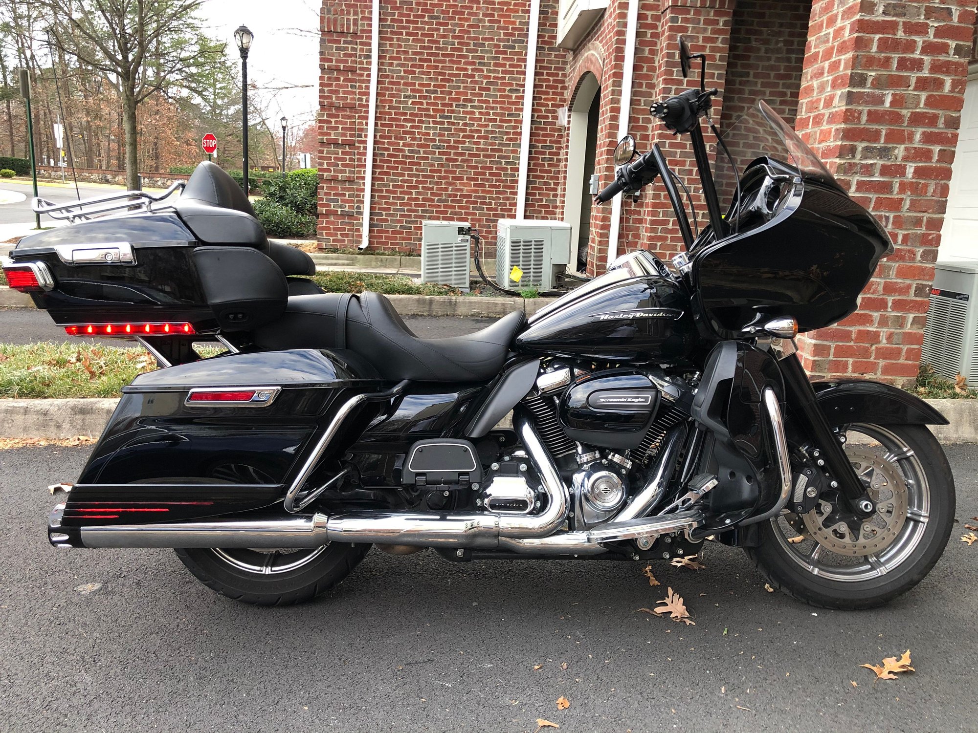 2018 Road Glide Ultra 107ci twin-cooled Screamin Eagle Stage 2 Torque kit (Factory Warrantied, Installed by Patriot HD, Fairfax VA), SE Pro Street Tuner, Rinehart Motopro45 slip-on exhaust w/Merge end caps, Progressive Monotube FST Front end Suspension, Avon grips/bar ends, Fat Baggers 16” EZ-Install bars, Boom Audio stage 1 front/rear speakers, Kuryaykn extended saddle bag lights, Custom chrome wheels. Bought at Rapid City HD during Sturgis Rally 2018, paid $37K. 11,781 miles(all highway touring).