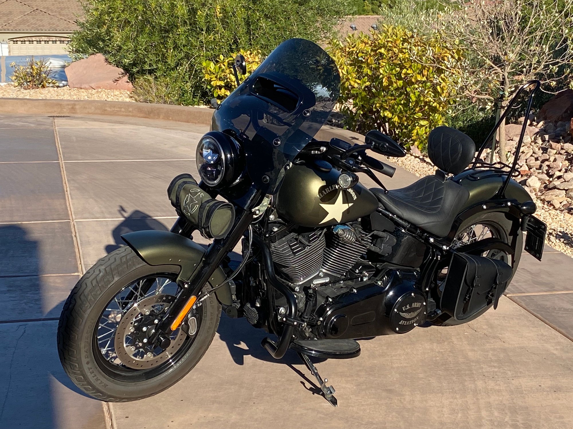 2016 Harley Davidson FLSS Softail Slim S, 110" Screamin Eagle Twin Cam, 6 speed, ABS Brakes, Security, Cruise Control, Olive Gold Denim, Military themed. Beautiful bike, highly customized & unique (~$4,000), gets lots of attention wherever you go. Lots of fun to ride and fast for an HD, engine is super powerful! This bike is in perfect shape mechanically and cosmetically. Price is negotiable but low-ball offers will be ignored. No joy rides, serious buyers only. More pics/video on request. Will ship at buyer’s expense. VIN-1HD1JS918GB035794. Thanks for looking!
