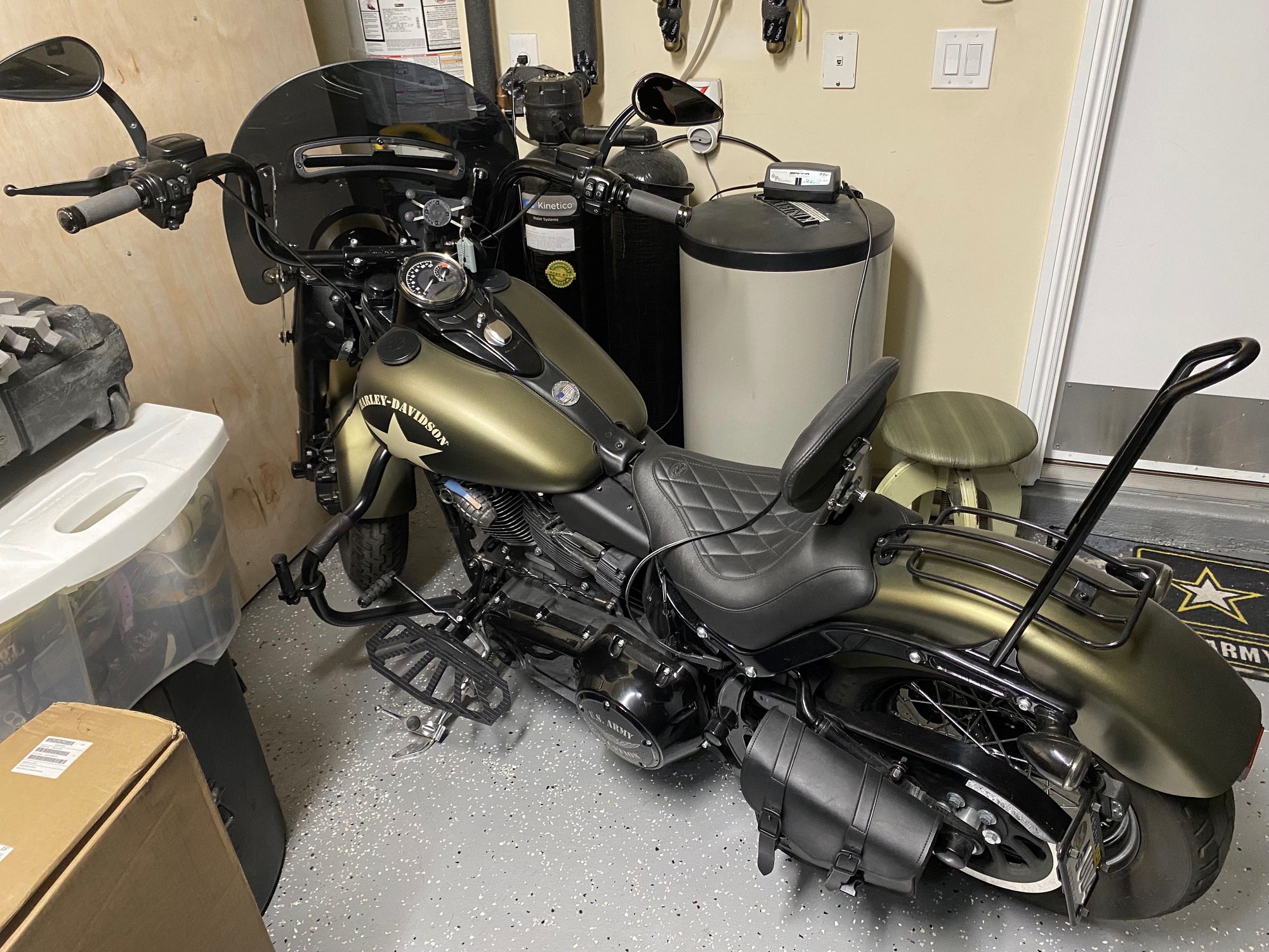 Rare model, only available in 2016 & 2017. 6,550 miles. Never been dropped, garage kept. Newer battery. Regularly serviced, oil last changed at 5,000 miles. Security system & key FOB. HD Combo Analog Speedometer & Tach- Customizable, many features incl. gear selection. HD LED Fuel Gauge and matching black Fuel Cap. Custom Dynamics LED Headlight and super bright LED Turn/Brake Signals. Mustang Wide Tripper Seat & removeable Back Rest. 18” hard mounted Sissy Bar from the Forge LLC. Black fender removeable Luggage Rack. Finned headbolt bridge. HD Swingarm Solo Bag. La Pera custom Front Fork Canvas Bag w/leather trim. Performance Machine Grips. HD Extended Brake Pad and Extended Shift Peg. Black Engine Crash Bar and Highway Pegs. Kuryakyn Riot Driver Floorboards. Custom Vance & Hines Pipes. HD Splitter Windshield- removeable. HD ***** G Mirrors & Air Cleaner Badges. Barbed Wire Custom Shifter Linkage. Custom Derby Cover- US Army Aviation. Dummy Grenade in place of relocated horn. Mid-Frame Heat Deflectors. Black Axle Nut Covers. 12” Ape Handlebars. Detachable RAM Phone/GPS Mount. USB Power Module Connection. Battery tender connection. Electronic Cruise Control. Hydraulic Clutch. Electronic Throttle. MOST PICS TAKEN BEFORE THE NEW RIOT FLOORBOARDS & SPEEDO/TACH WERE INSTALLED. Engine- Screamin´ Eagle- 110ci CVO-based engine. Engine size - Displacement - Engine capacity 1801.00 cc. Compression- 9.5:1. Bore x stroke- 101.6 x 111.3 mm (4.0 x 4.4 inches). Fuel system- Injection. Electronic Sequential Port Fuel Injection. Double Overhead Cams/Twin Cam (DOHC)Engine type - Number of cylinders V2, four-stroke Camshaft Valvetrain Configuration Double Overhead Cams/Twin Cam (DOHC) Maximum power - Output - Horsepower 92.50 HP (67.5 kW)) @ 5250 RPM Maximum torque- 145.00 Nm (14.8 kgf-m or 107.0 ft.lbs) @ 4000 RPM Cooling system- AirGearbox- 6 speed Transmission.