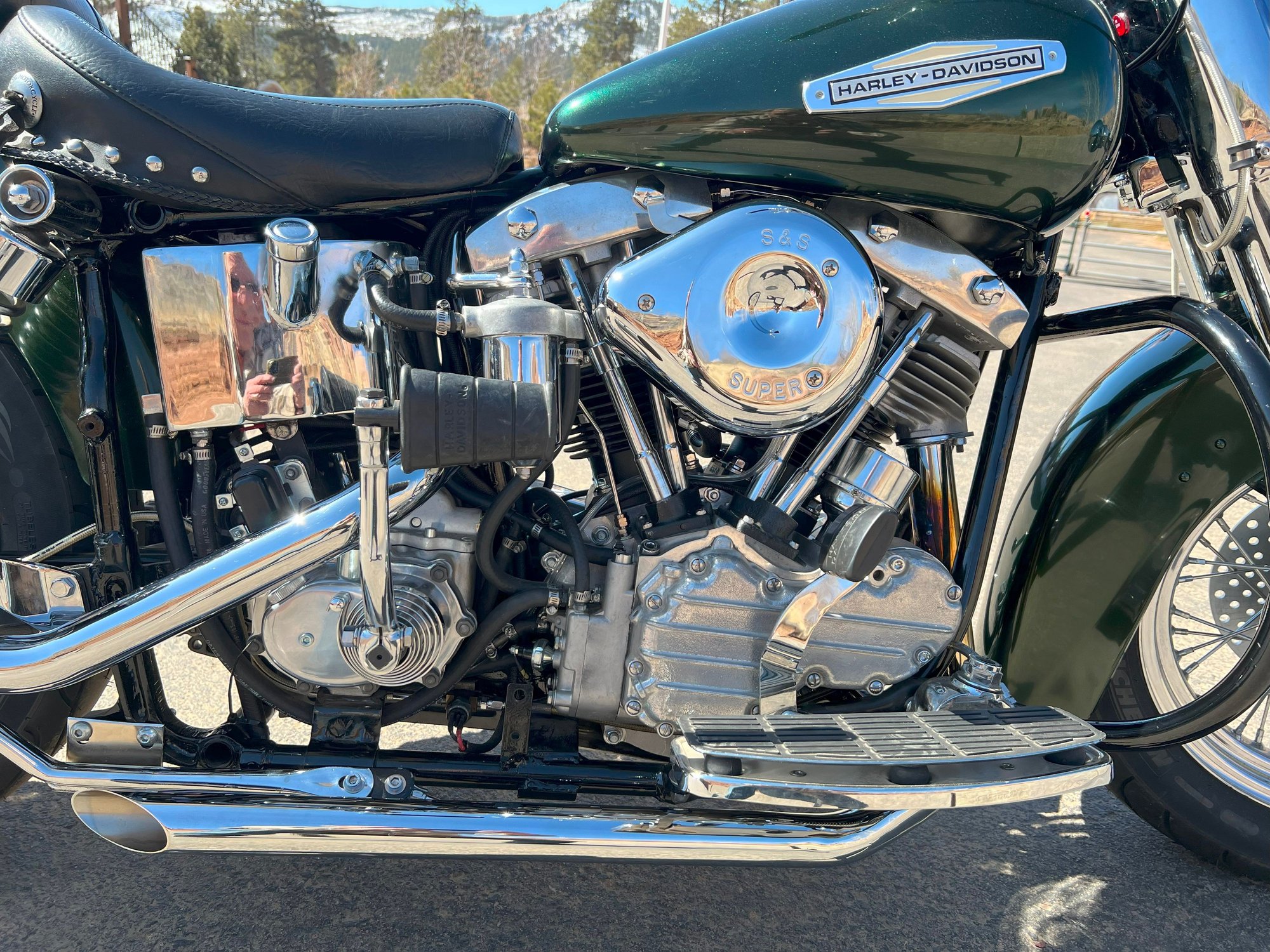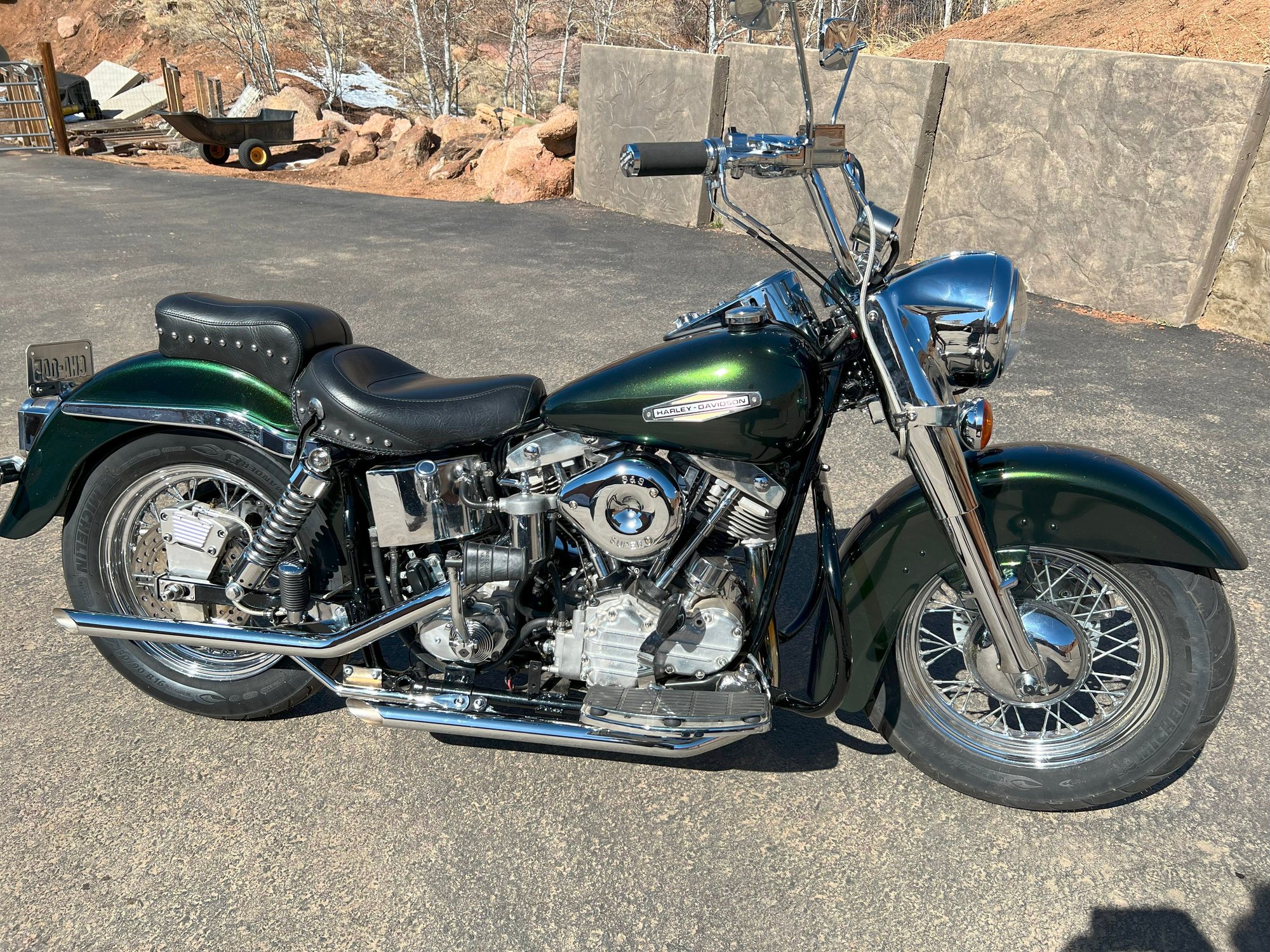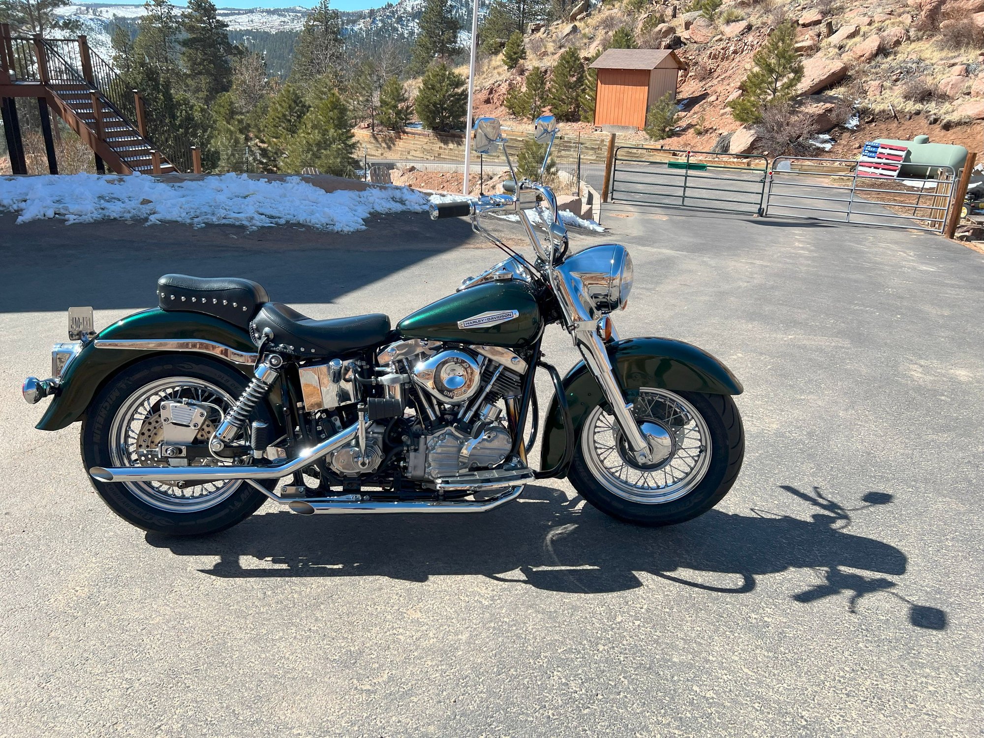Like New frame off restoration, Titled 1969 FLH Shovel Head with notarized MSO. Painted Candy Pearl Sea Green over Black. Every part inspected and reconditioned or replaced. New professionally built Shovel Head 4-1/2” stroked 84 cubic inches. Complete restoration, New transmission, S&S super E carb, generator, solid state voltage regulator, starter relay, exhaust w/ removable baffles, floor boards, Forks, triple tree, Headlight, Front brake caliper, rotor, master cylinder, tires, turn signals, and period correct woven cloth wire harnesses. Fuel tank cleaned and sealed. Odometer shows 9571 mile but this is a 0 mile new bike. $17,000 obo.