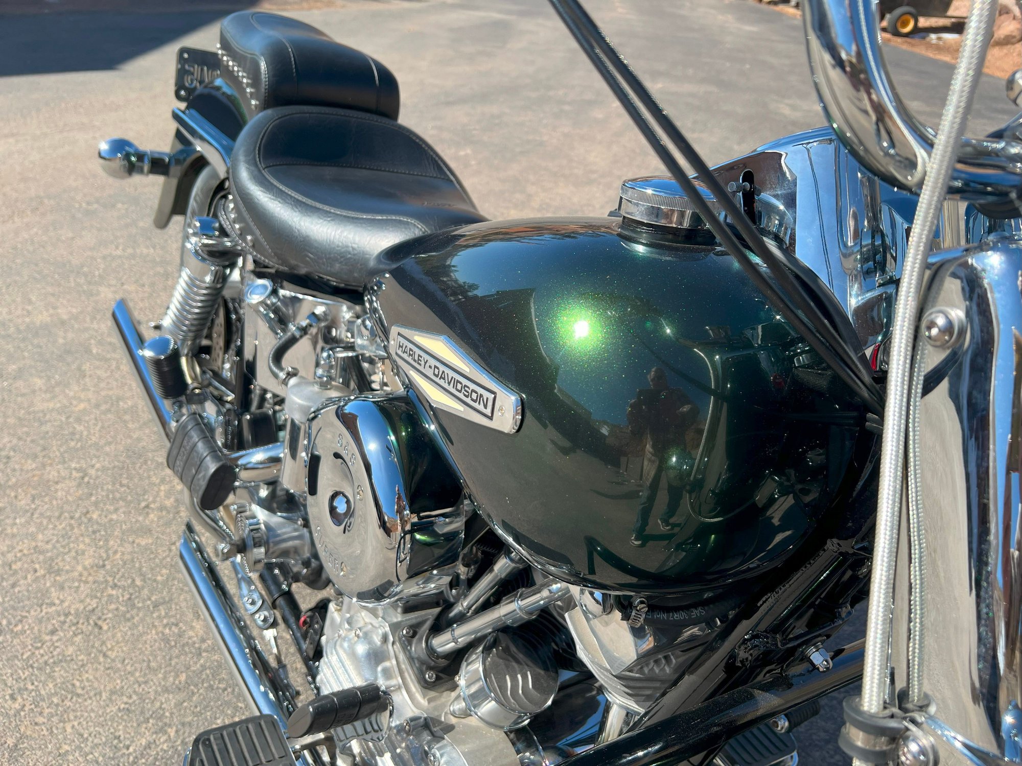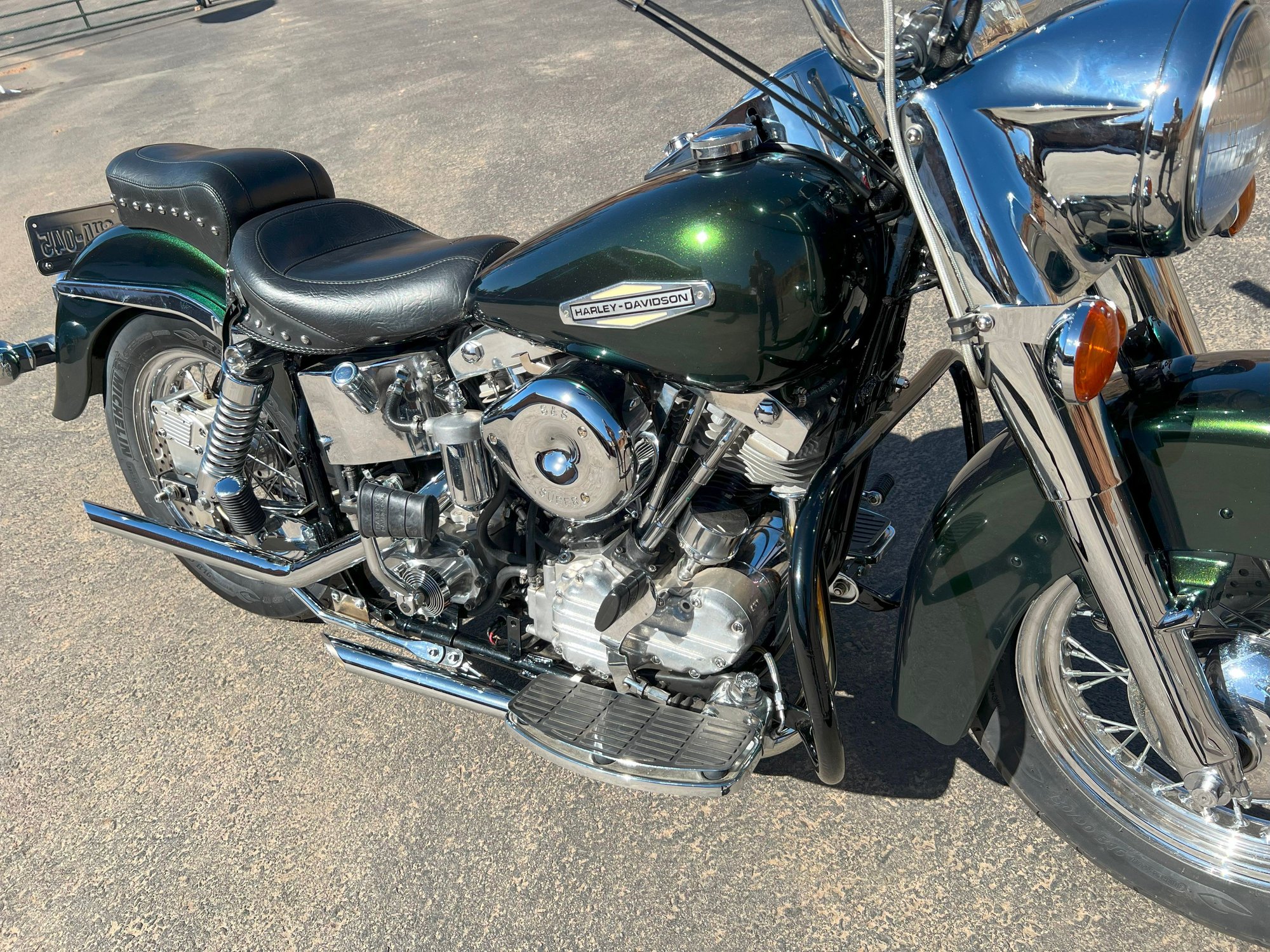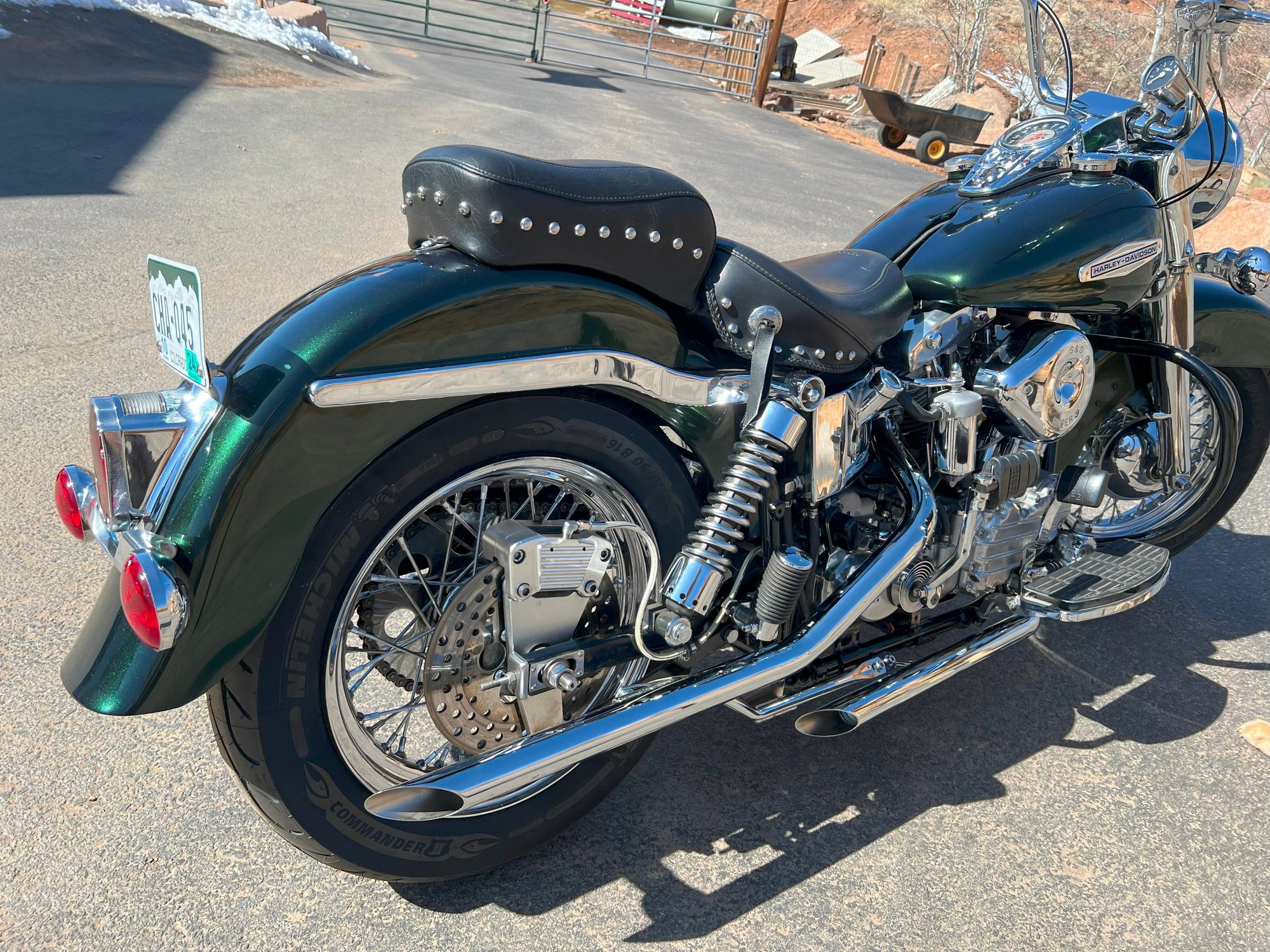 Like New frame off restoration, Titled 1969 FLH Shovel Head with notarized MSO. Painted Candy Pearl Sea Green over Black. Every part inspected and reconditioned or replaced. New professionally built Shovel Head 4-1/2” stroked 84 cubic inches. Complete restoration, New transmission, S&S super E carb, generator, solid state voltage regulator, starter relay, exhaust w/ removable baffles, floor boards, Forks, triple tree, Headlight, Front brake caliper, rotor, master cylinder, tires, turn signals, and period correct woven cloth wire harnesses. Fuel tank cleaned and sealed. Odometer shows 9571 mile but this is a 0 mile new bike. $17,000 obo.