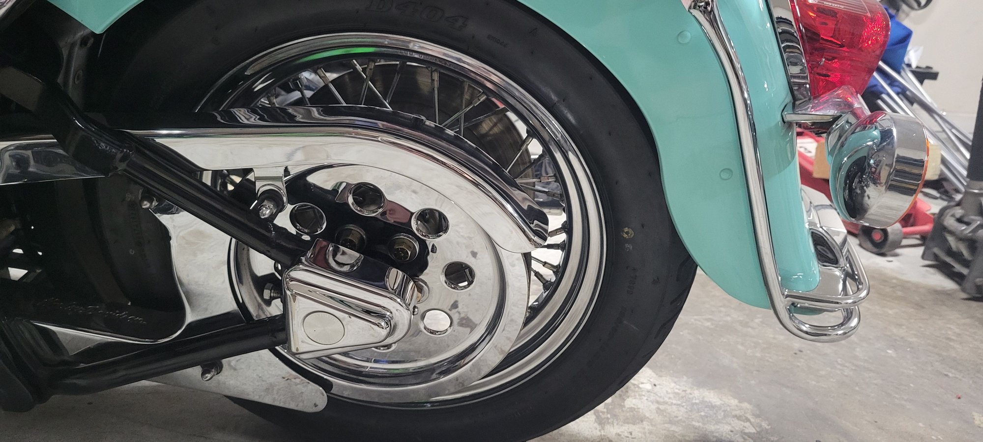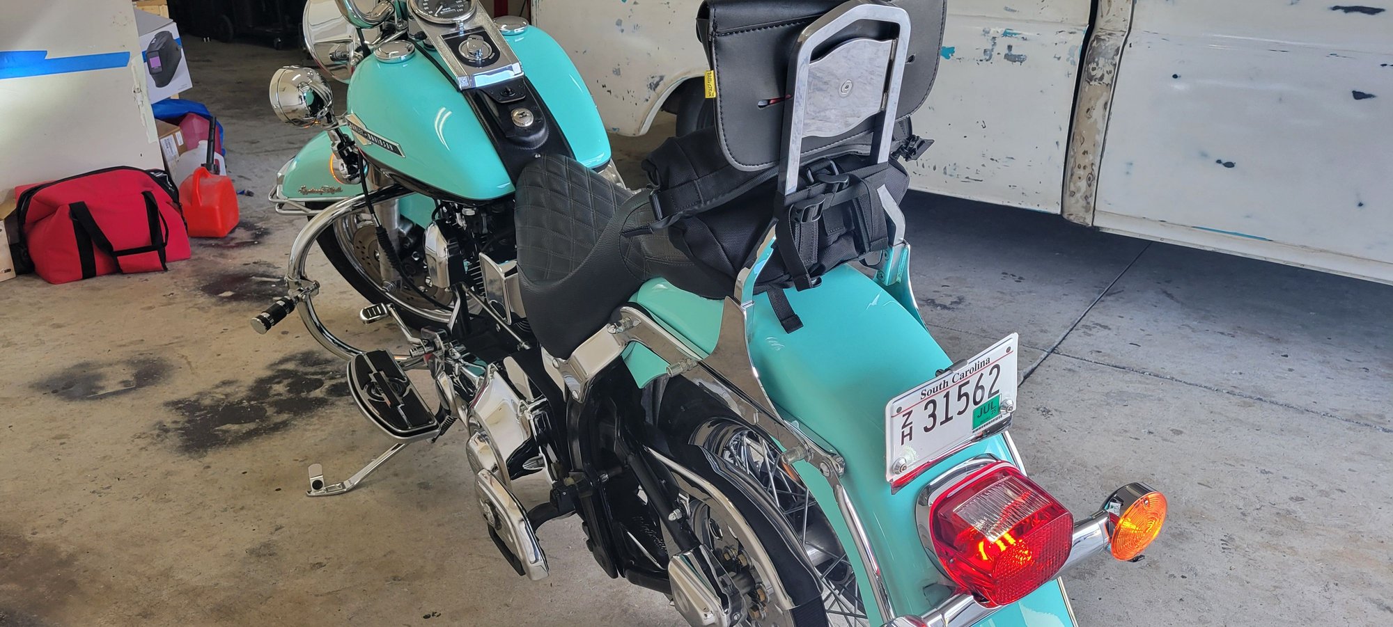 Very good condition Harley Heritage Classic, tin set color is called Mint green.