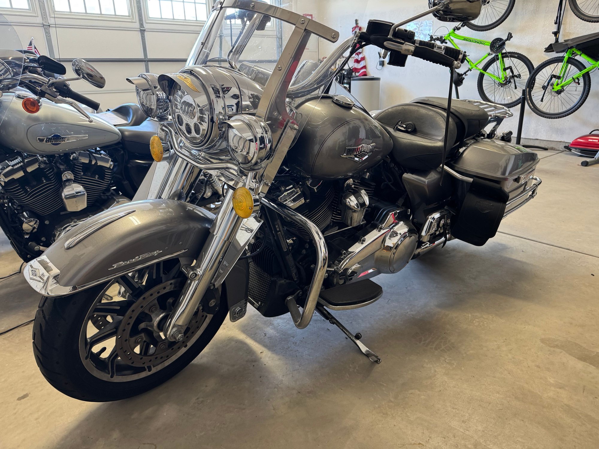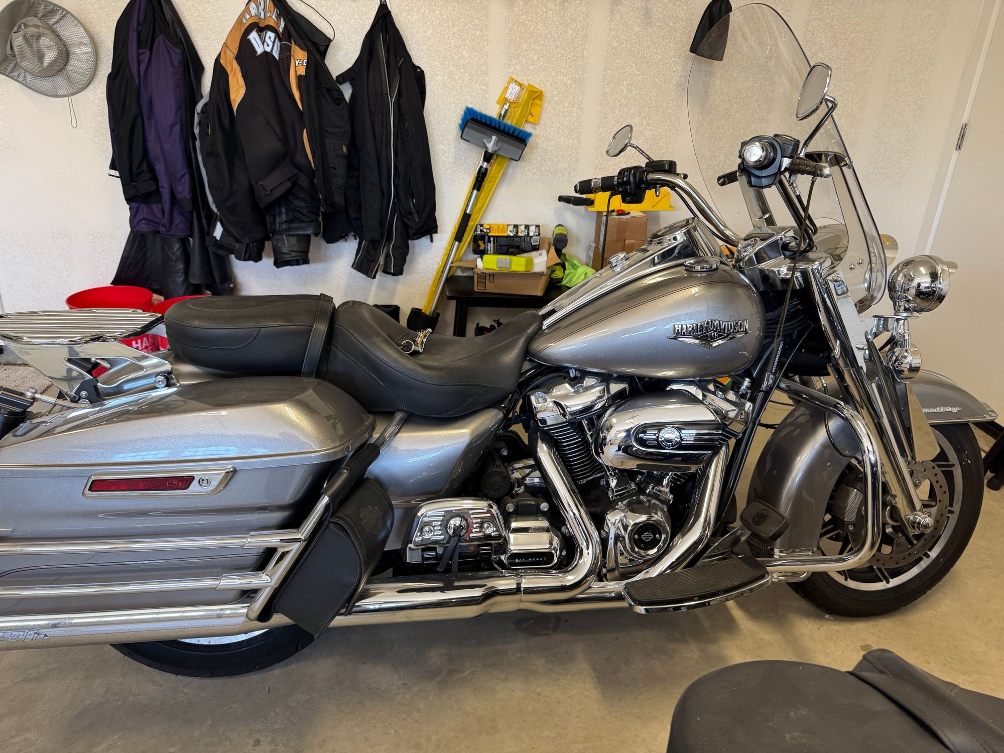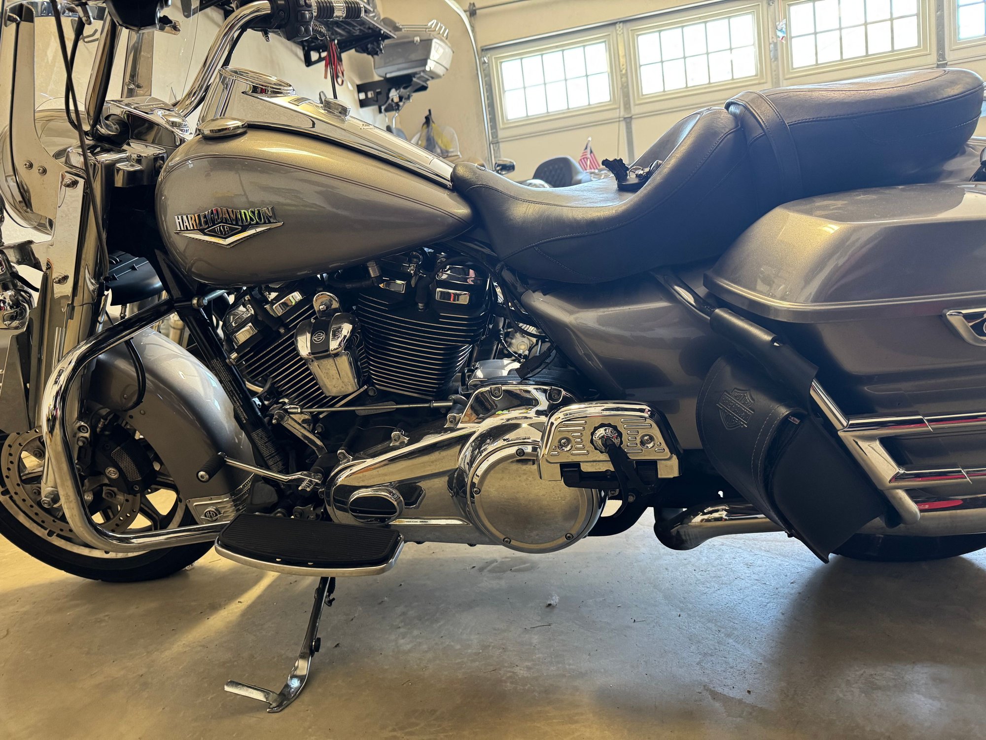 When I first got it, I installed the genuine Harley Stage I stuff, AC/SE slip-ons, and tune. I have the Street Tuner that goes with it in case you want to change that any. Fork Fangs and saddlebag guards. Since I worked at a dealership, I had them install the Stage III kit (heads and cam), at the same time I added heated grips, the SE/Ohlins shocks on the rear and had the forks filled with fresh/heavier fluid. I installed LED lighting all around, the headlight is a Custom Dynamics adaptive light. Mustang Touring seat, stock one available if ya want it. Also comes with the color matched HD TourPak with luggage rack. It quick detaches. Also a separate Quick-detatch passenger backrest, rider backrest, and luggage rack. Has the audible alarm siren installed. Service manual, owner manual, 2 sets of keys w/fobs, and all the service paperwork I can dig up.