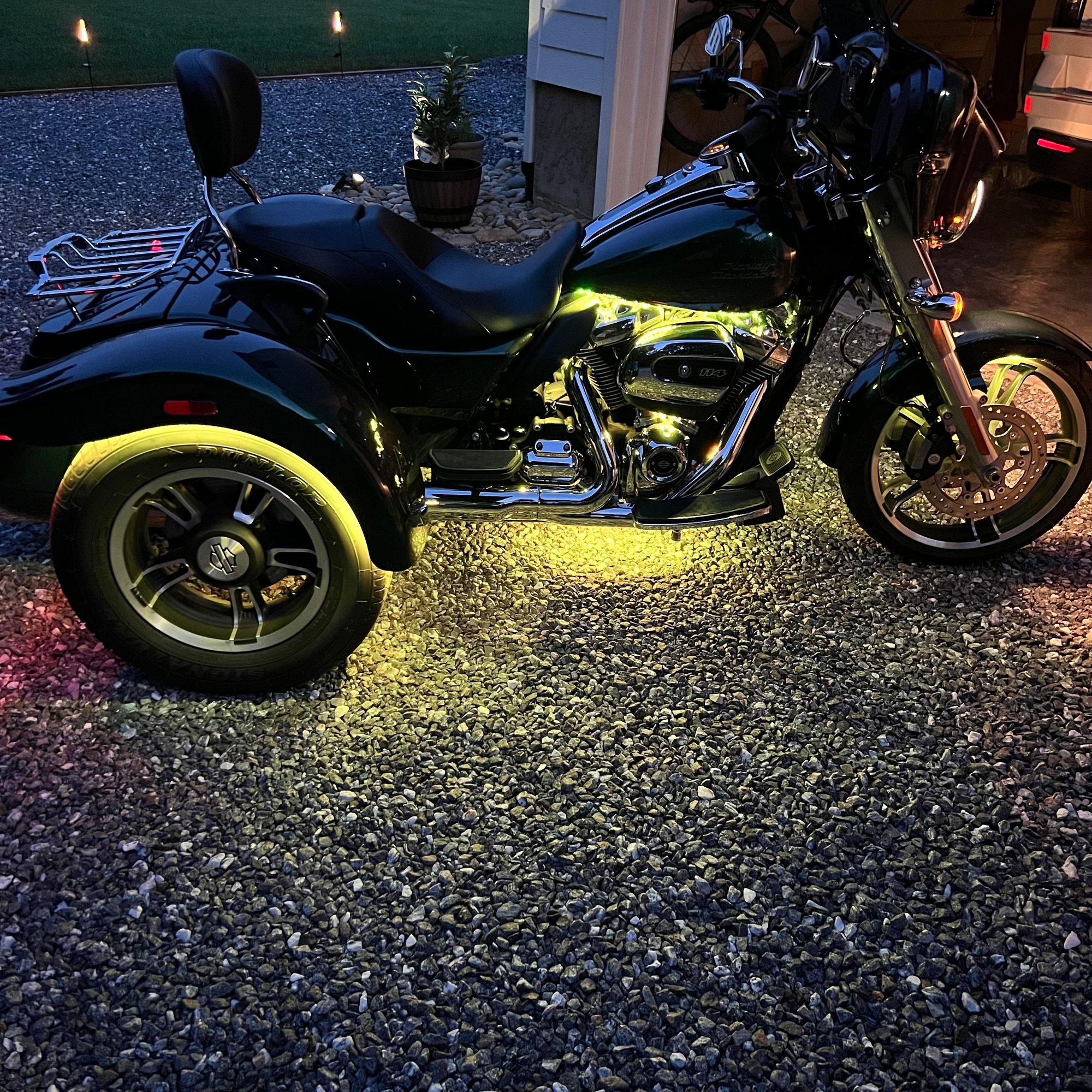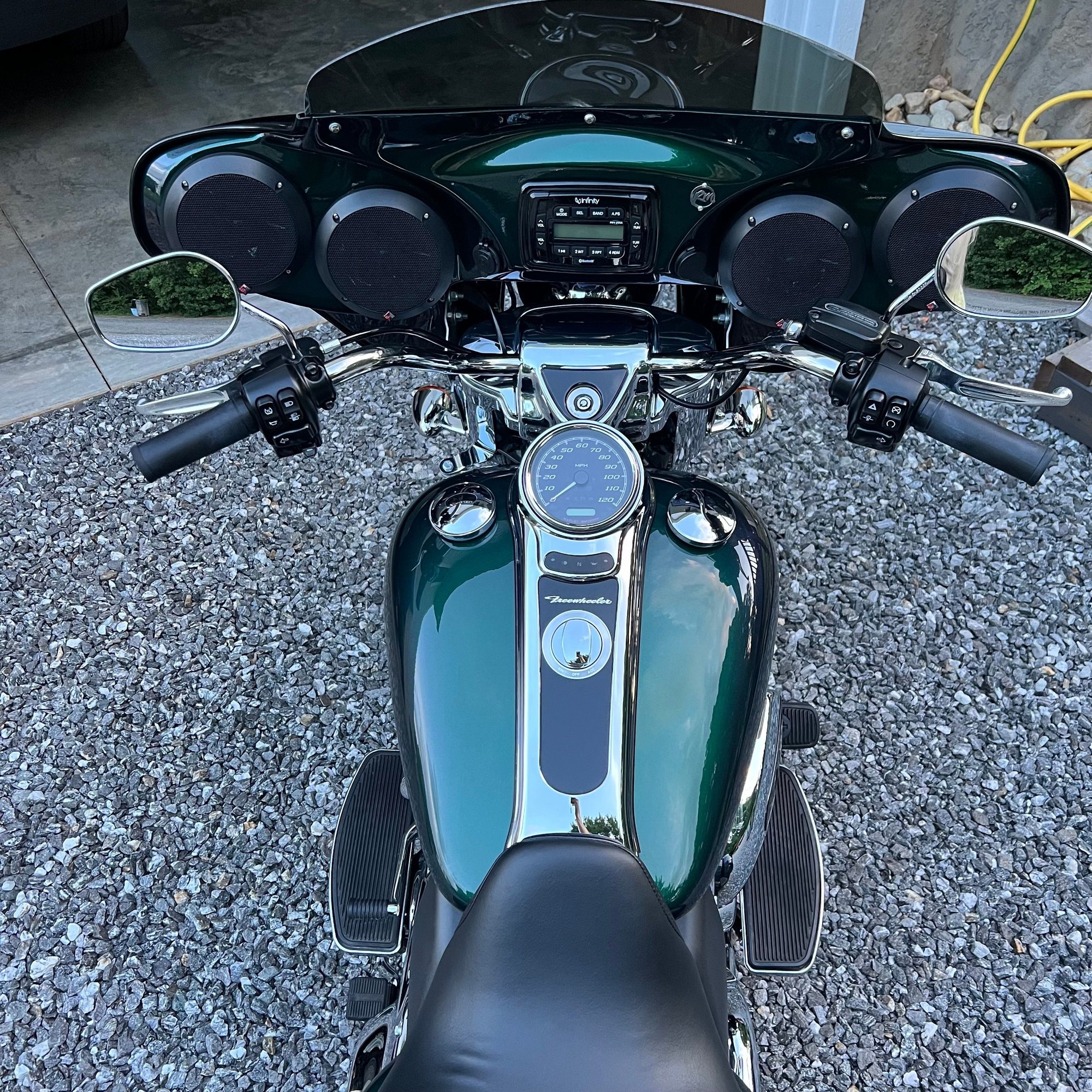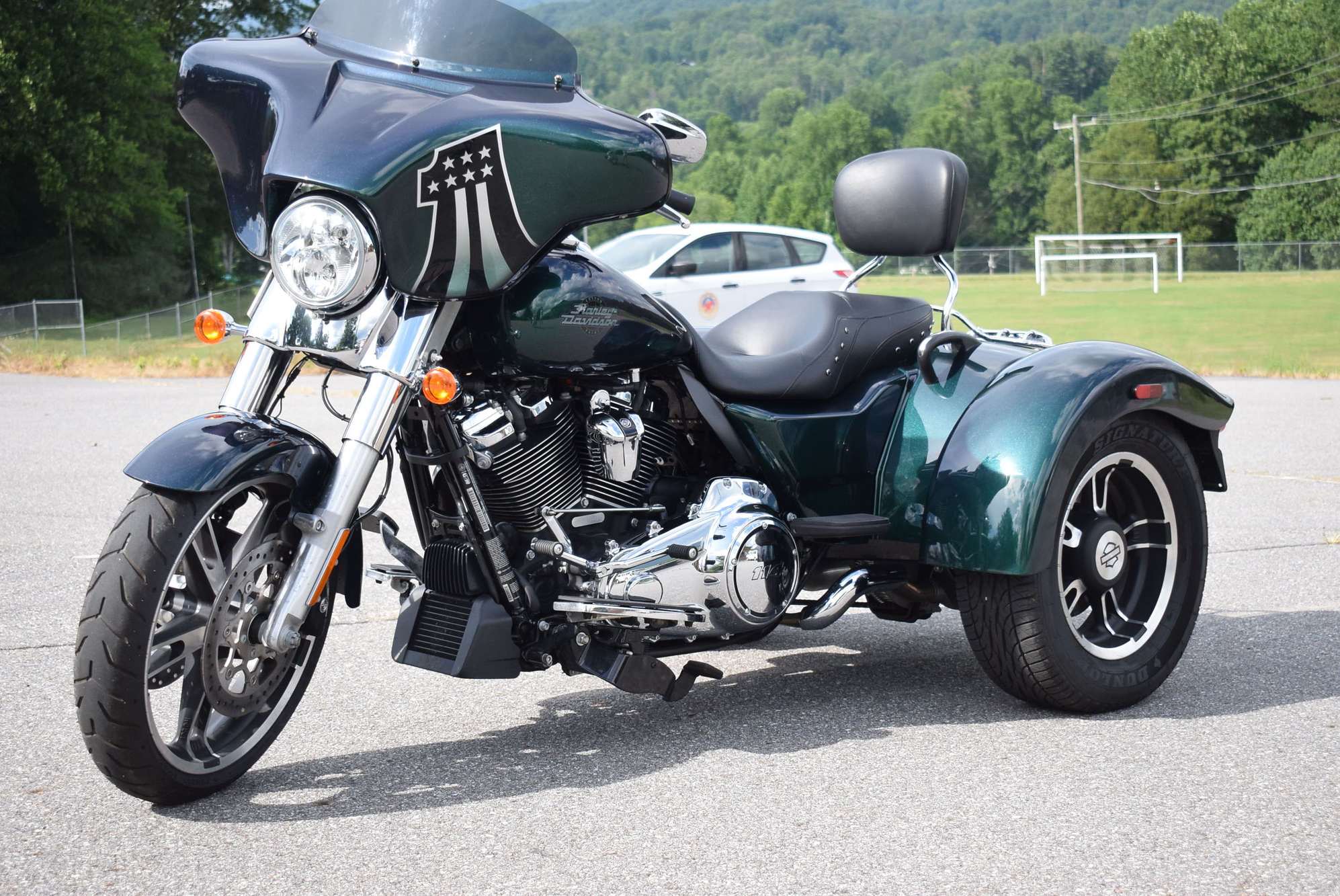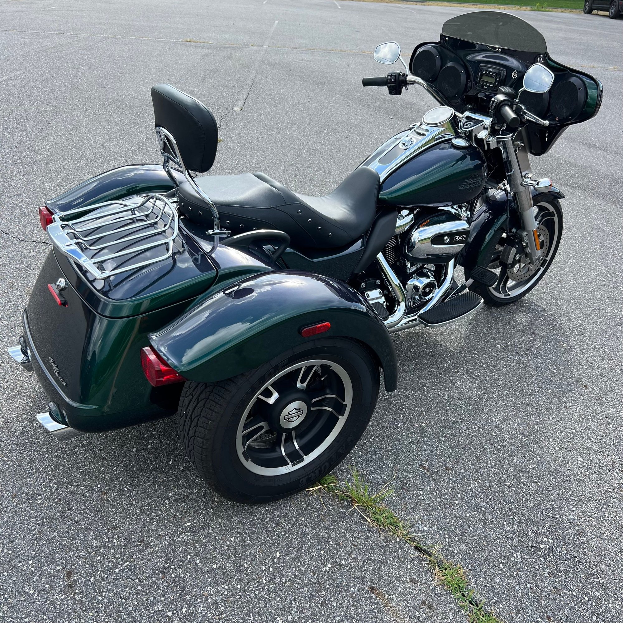 Price is $22,700. Located near Asheville, NC. Harley Davidson Freewheeler 114ci in custom chameleon Snake Venom paint. Snake Venom changes its color from deep green to black to purple depending on the light. It is a very rare paint on the Freewheleer and was an expensive upgrade. Upgrades are all dealer installed fairing dealer painted in Snake Venom, Infinity 4-speaker stereo with 500W amplifier, H-D upgraded seat, integrated LED lighting, H-D cargo rack, H-D passenger backrest, USB charging ports.