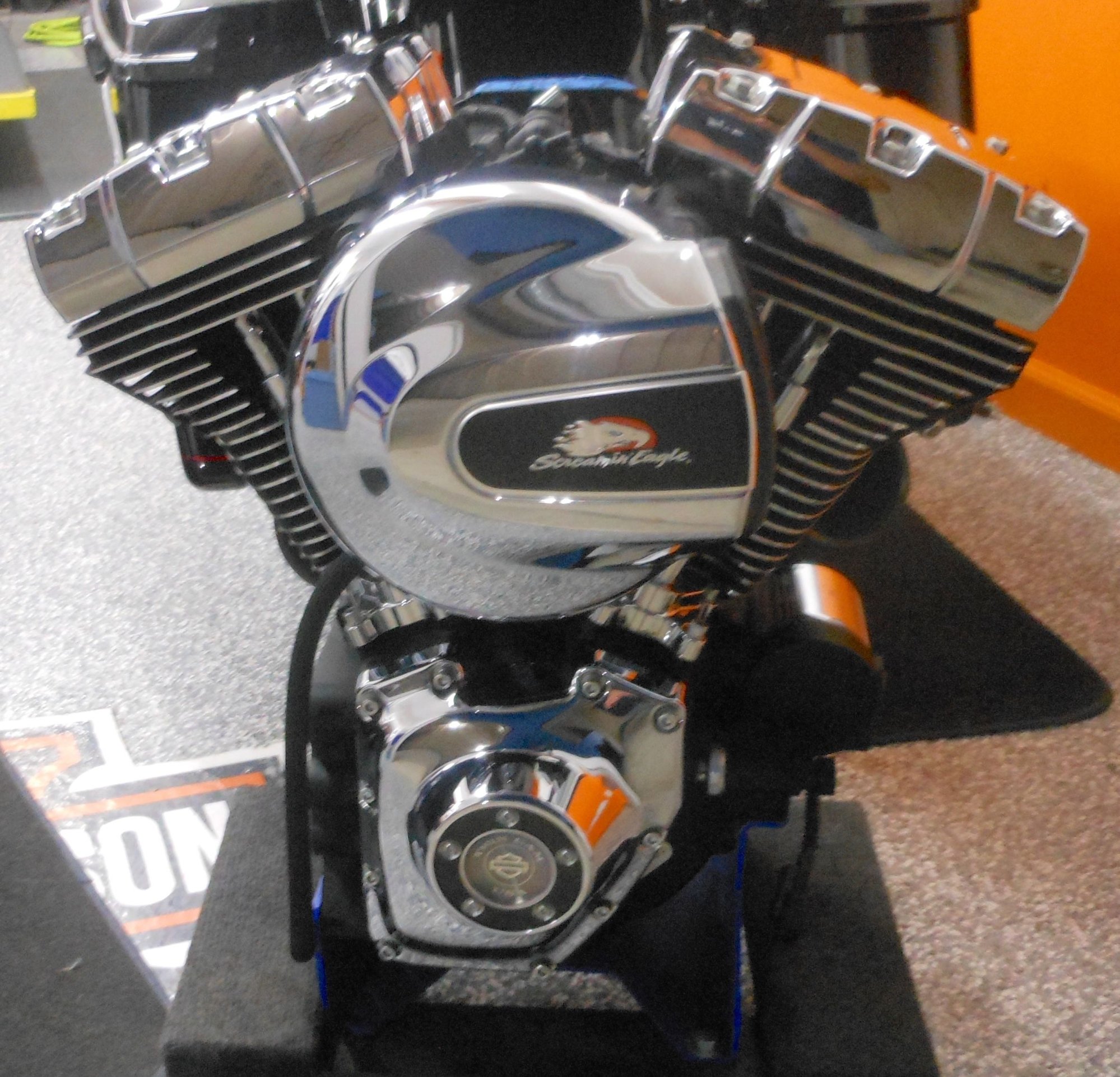 I also have the original, numbers matching 103" HO engine that came in the bike from the factory. It is a completely OEM engine, with a Stage I Screamin' Eagle air cleaner, an external breather system, and all sensors/parts needed to drop it in the bike and ride. It has 21K miles. The OEM engine was fogged and openings sealed, after it was removed for the S&S engine install. It has been stored in my climate controlled garage/shop. I would be willing to include the engine in this sale for an extra $1200.