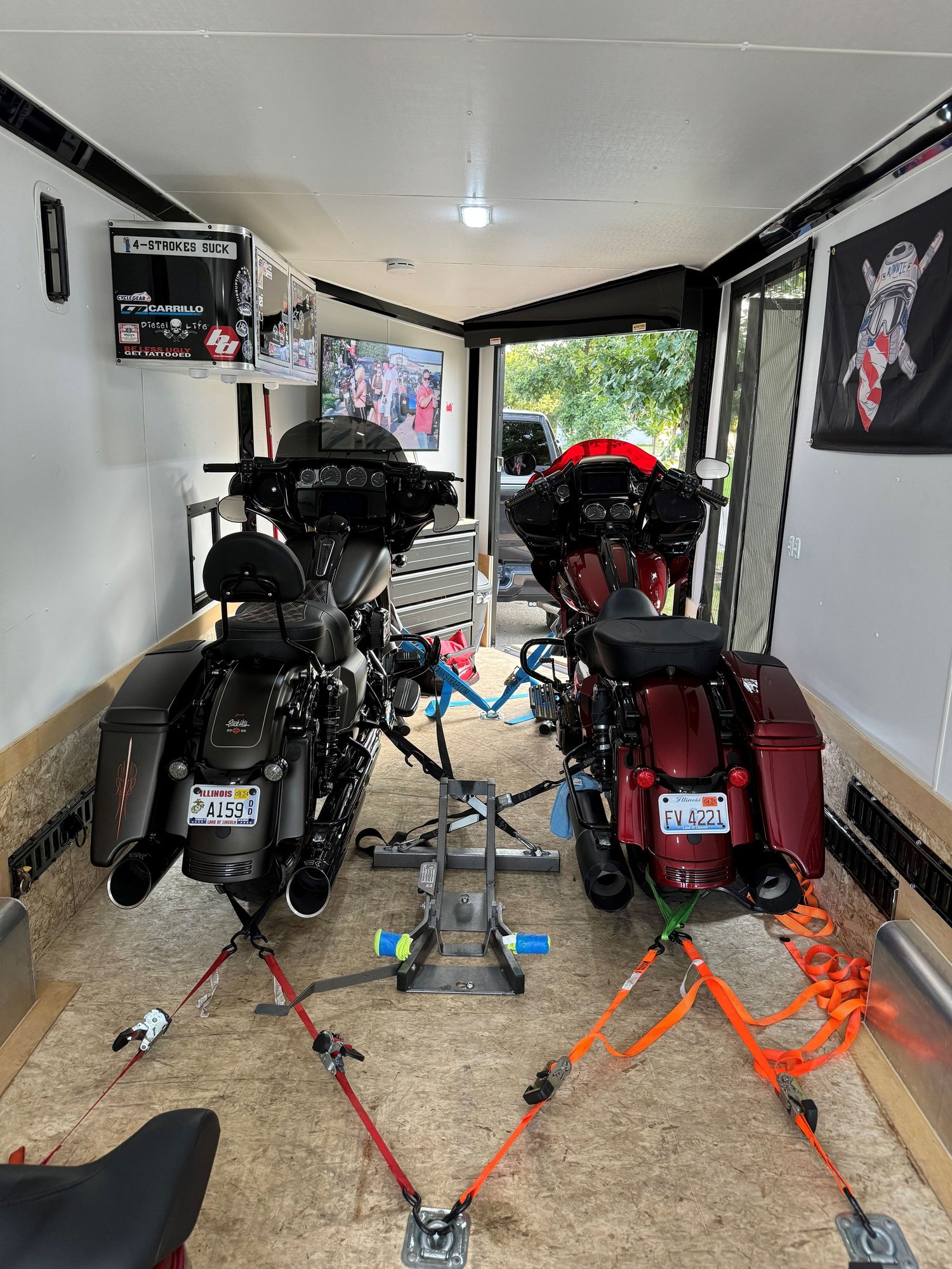 Good times in the black hills for the 84th! I trailered 5 bikes out 975 miles. I will NEVER try and cram 5 bikes in a 25' enclosed trailer again. They fit, comfortably - but it was a web of straps everywhere and a total PITA to get everything strapped down securely.