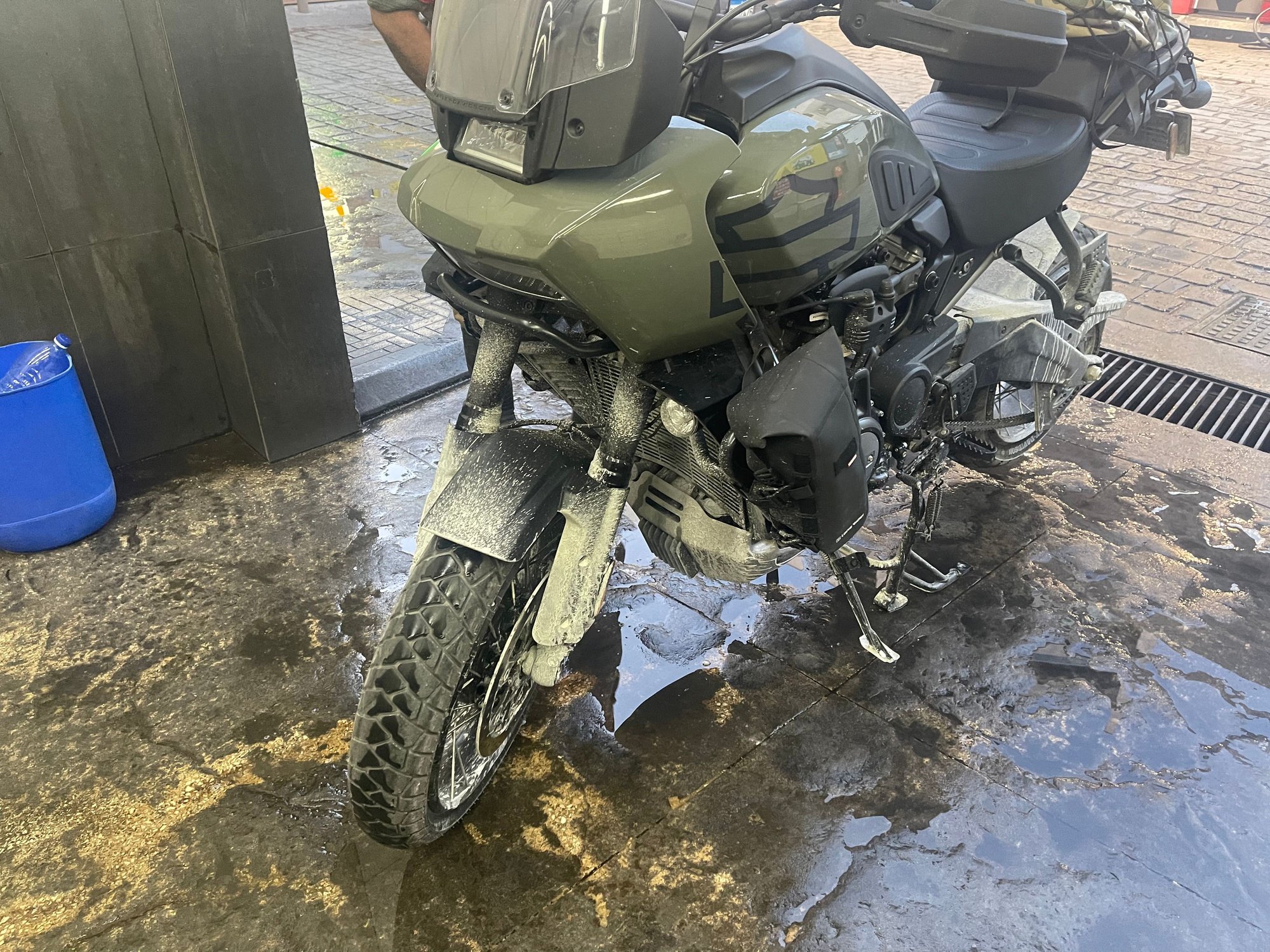 Then either ride it to dry it, or blow it off with a pet dryer (same as a motorcycle dryer, but less than half the price). Then I look for the missed bits and start to detail them. There's a lot of "missed bits" on the Pan.