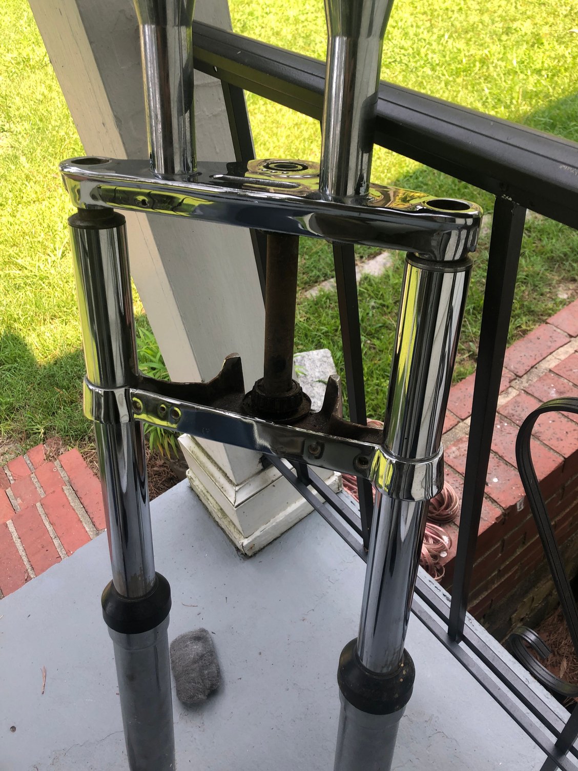 Picked up a left-side drum 41mm front end. To my knowledge, it’s all OEM, not that it matters to me. It was missing the stem nut when I got it, so I picked up one on ebay from colony fasteners that says it replaces OEM part #45718-60. It doesn’t go past the first couple of threads without getting too tight to turn. I thought it might be that the threads were a little marred, but I can freely spin the bearing adjusting nut. The thread pitches on the nut and bearing adjuster do look to be the same, but I figured I’d ask if anyone knows whether an earlier stem nut might have a different pitch to it. Couldn’t find this with a google search. Here’s a pic of my front end from when it was loosely assembled when I got it. if it helps. Even just knowing exactly what I’ve got would be good. Thanks.