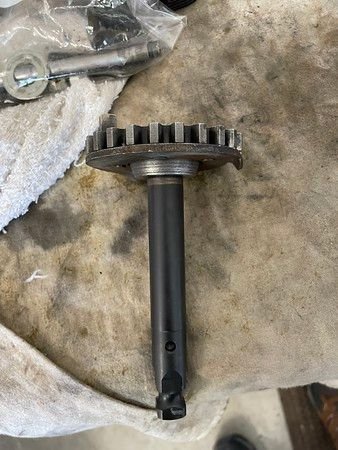 New starter gear (pic of old below it) for the starter; clutch release bearing; longer crank shaft ( all part of the Cannonball kit)