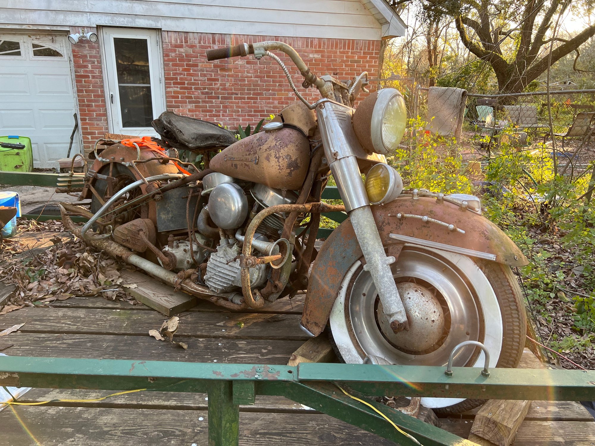 I think this bike is early-mid production. The front fender was redesigned for late production ‘49s. The early fender was recalled in the same year as the non-riveted version was dislodging from stress cracks. HD offered a free replacement.