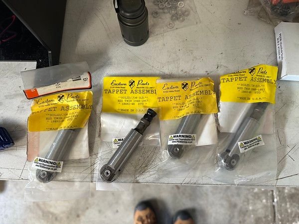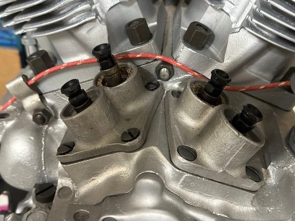From the parts stash I am using a set of mismatched FL cases, '49 left case with good numbers (just need title), & a '51 FL right case. Left case is being repaired. Gonna use K 7 heads (both) with no broken fins. Also have some never-used Black Diamond valves that should work nicely with the heads along with OEM rocker arms. Have FL 49-49 cylinders with no broken fins that I will take to L.A. Sleeve for stock size and rebore. Figuring on ordering a set of stock 74 FL flywheels from T&O.